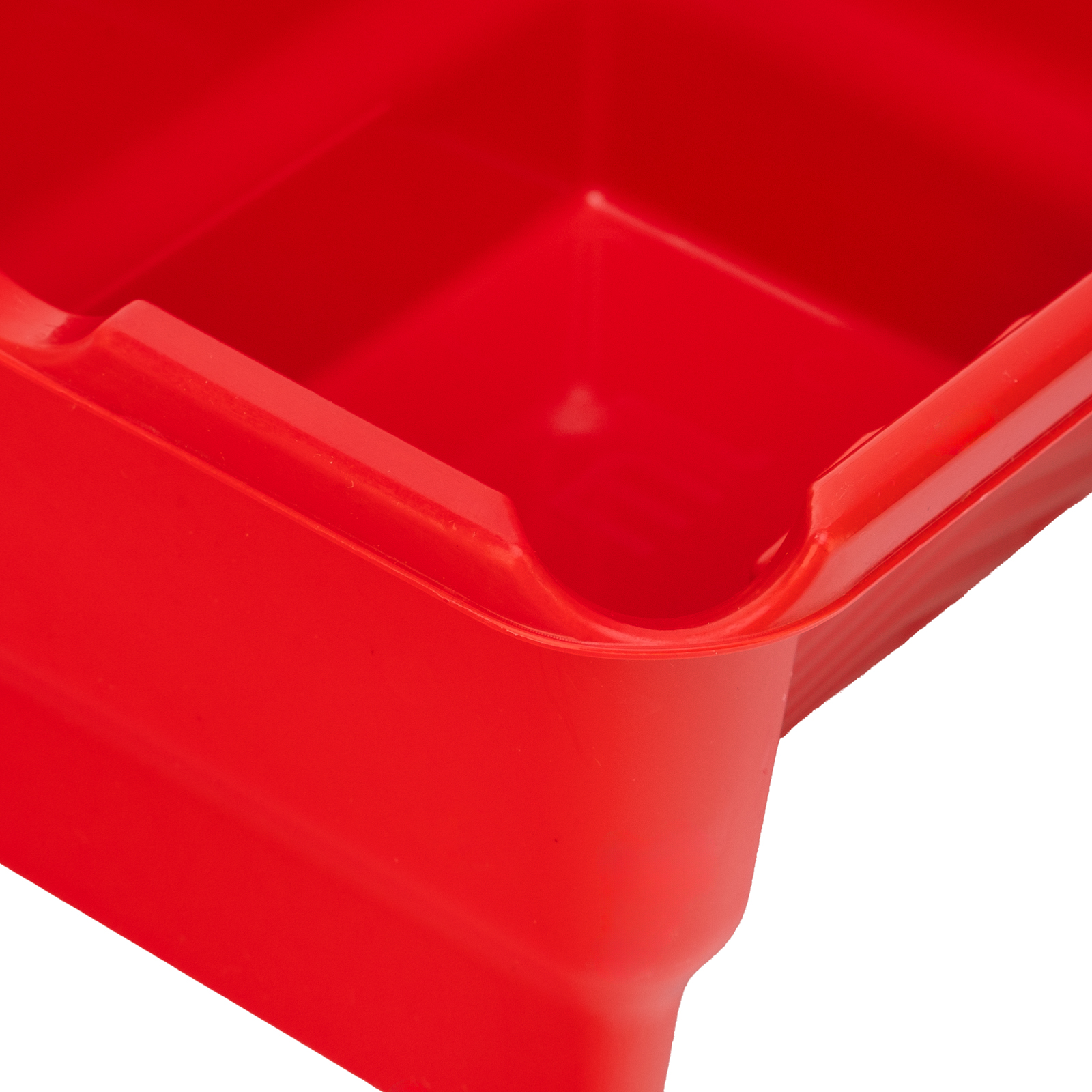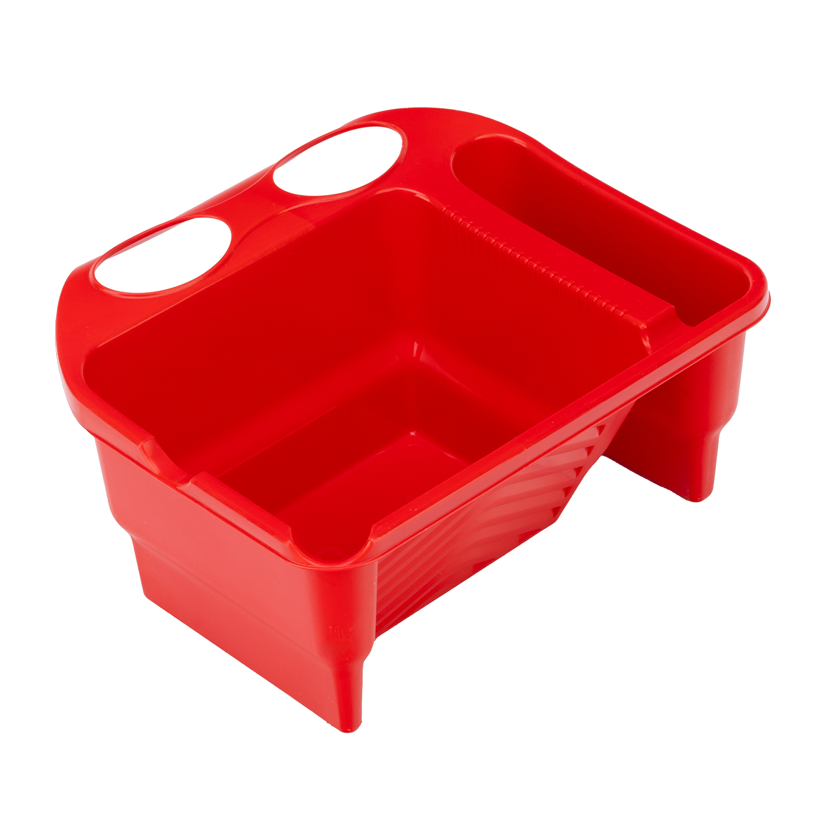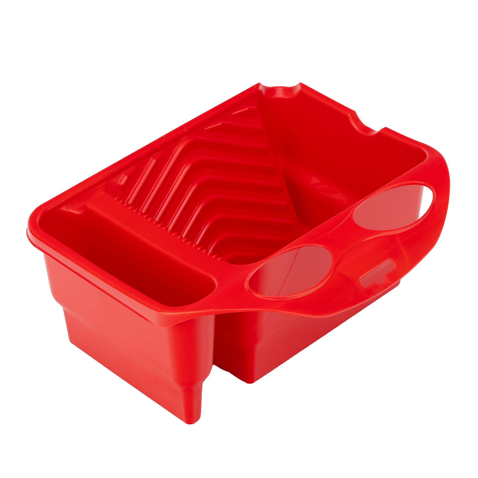 - Продуманная конструкция — в емкости предусмотрены специальные поверхности для раскатки валиков, очистки кистей, слива избыточной краски, а также есть лоток для хранения малярного инструмента.