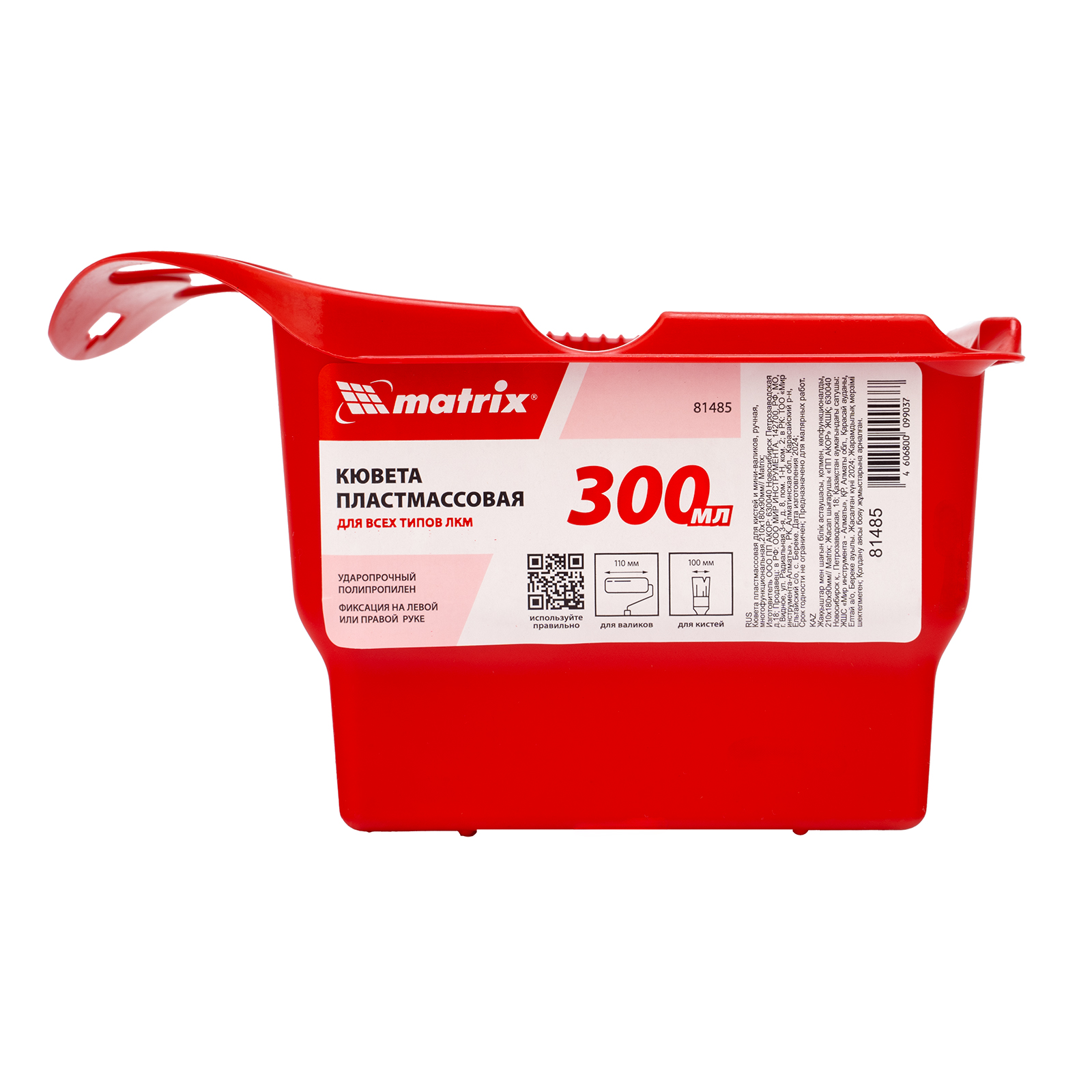 Ручная пластмассовая кювета для кистей и мини-валиков Matrix 81485 размером 210 х 180 х 90 мм и объемом 300 мл — многофункциональная емкость, существенно облегчающая процесс нанесения лакокрасочных материалов. Эргономика кюветы позволяет прочно удерживать ее в руке и работать со всеми типами ЛКМ в труднодоступных местах, при этом можно пользоваться сразу несколькими малярными инструментами: мини-валиками и кистями.