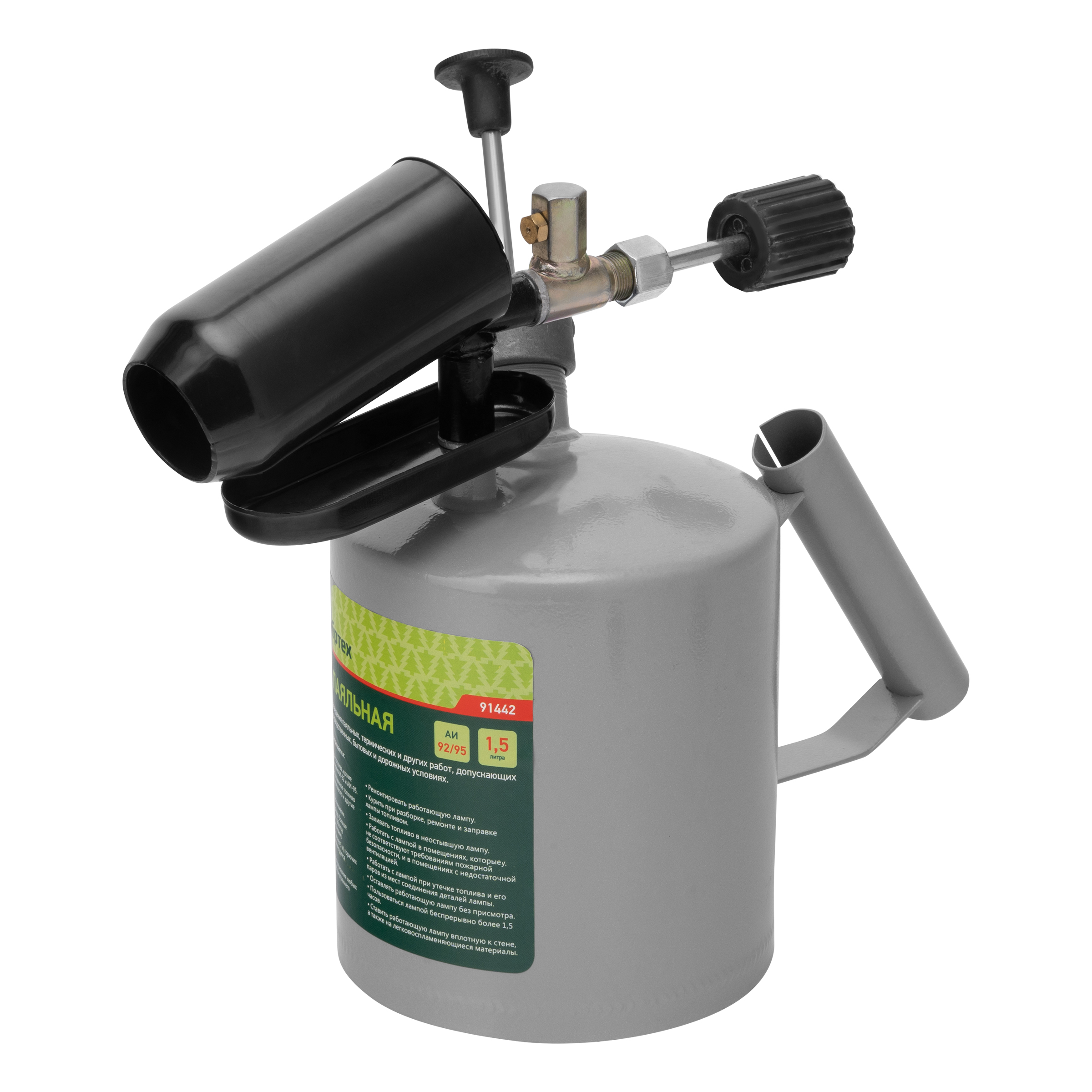 Паяльная лампа Сибртех 91442 с баком объемом 1,5 л используется для нагрева поверхностей. Применяется для выполнения монтажных и демонтажных работ, полезна также и для решения бытовых задач. Паяльной лампой можно разогревать жало паяльника и припой, варить медные трубы, нагревать заржавевшие или замерзшие соединения, снимать лакокрасочные покрытия, устанавливать термоусадочные трубки, а при наличии специальной подставки лампа поможет даже приготовить пищу. Она работает на любом бензине, кроме этилированного, а значит, проблем с заправкой не будет — достаточно заехать на АЗС.