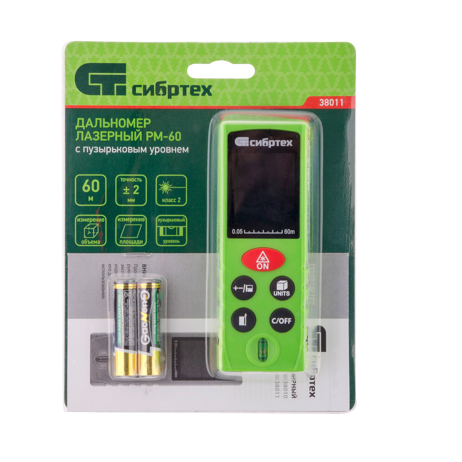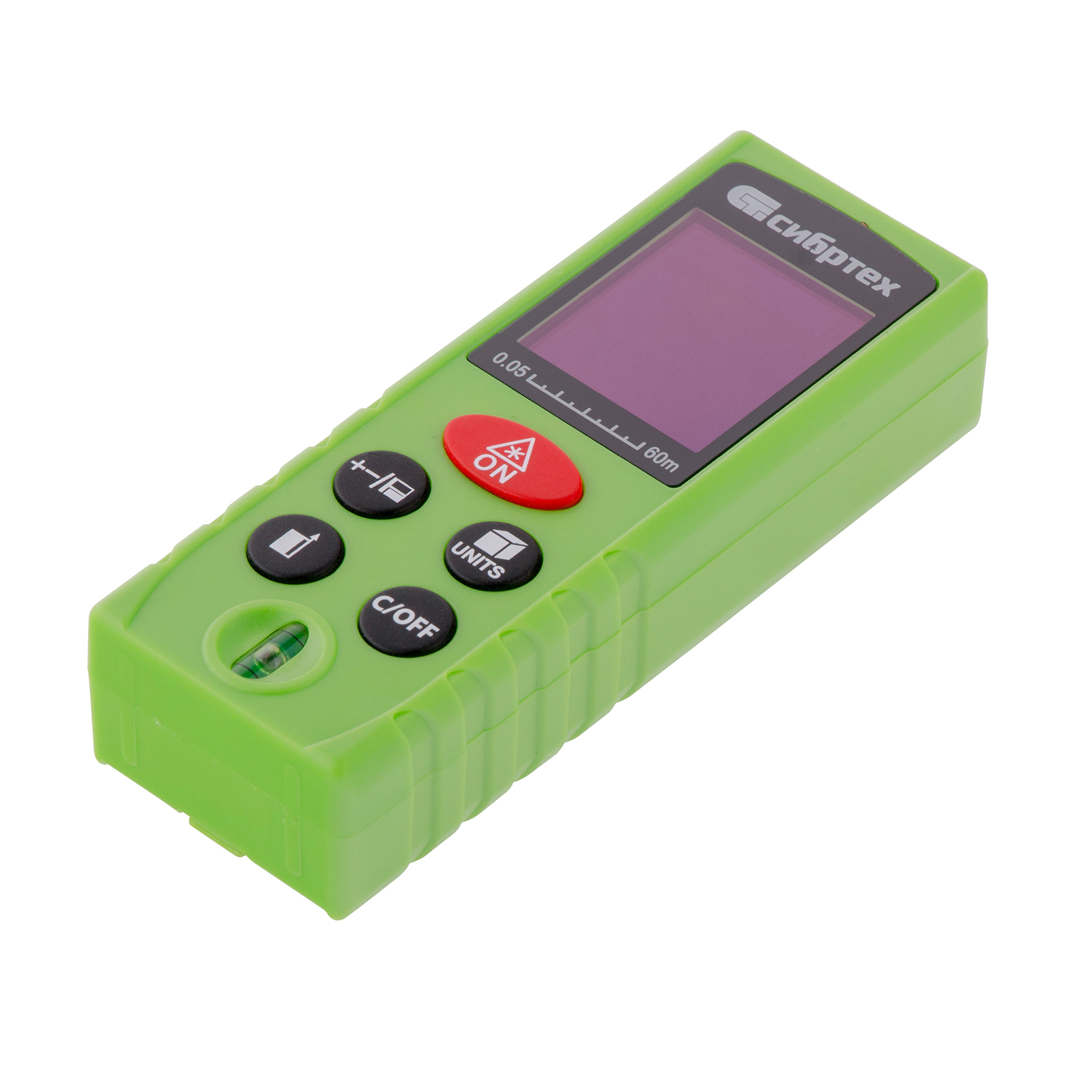 Лазерный дальномер Сибртех РМ-60 38011 с пузырьковым уровнем отличается высокой дальностью измерения до 60 м и помогает определять длину, объем и площадь помещения, а также складывать и вычитать полученные результаты. Он применяется при проведении строительных и отделочных работ: укладке плитки, установке окон, дверей, напольных покрытий, натяжных потолков. Будет полезен также для проведения дорожных и геодезических работ.