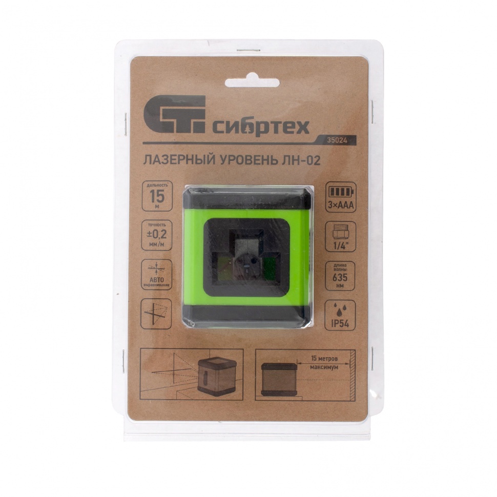 Лазерный уровень Сибртех ЛН 02 35024 с резьбой 1/4″ проецирует красный луч с длиной волны 635 Нм в вертикальной и горизонтальной плоскости на расстояние до 15 м. Используется во время отделки стен, укладки плитки, монтажа выключателей, установки полок и стеллажей, а также проведения других работ в закрытых помещениях.