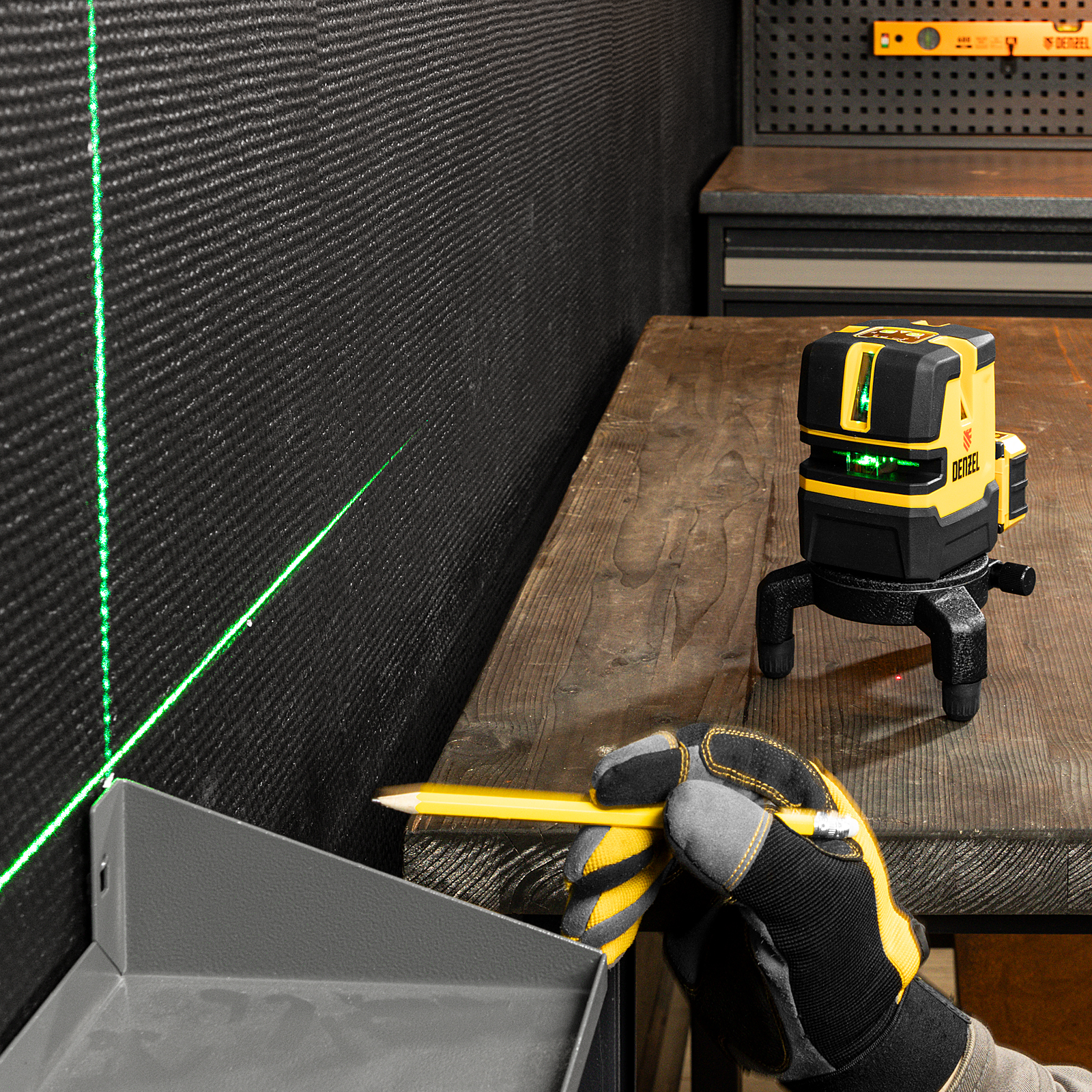Лазерный уровень Denzel LX 06 Green 35072 предназначен для построения линий разметки на стенах, полу и потолке при проведении строительно-ремонтных работ. Благодаря длине волны лазера 520 Нм дальность проецирования уровня составляет 30 м. Уровень проецирует на поверхности точку отвеса, 4 вертикальных и 1 горизонтальную линию. Функция автоматического выравнивания имеет высокую точность ±0,3мм/м. Угол развертки прибора составляет 240°.