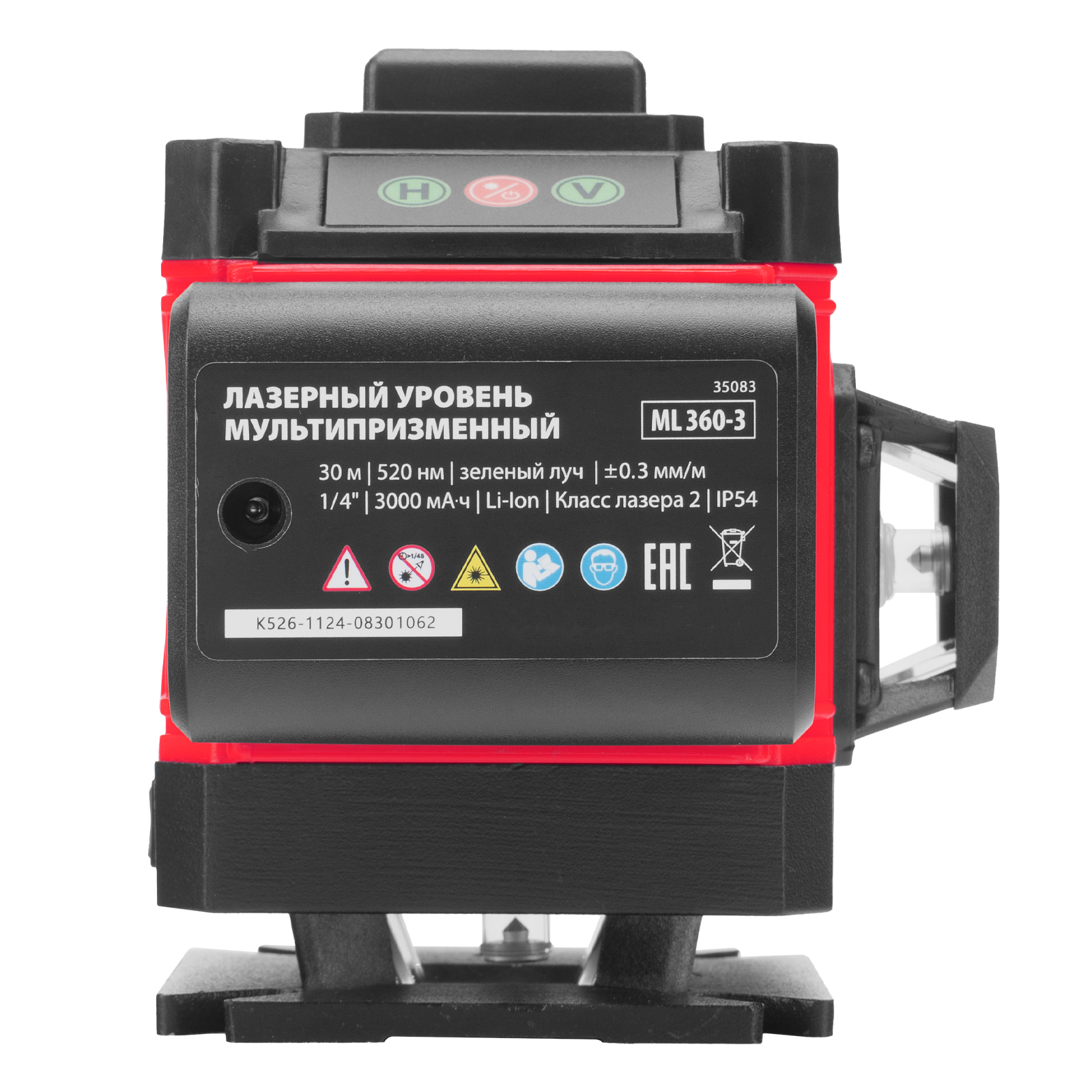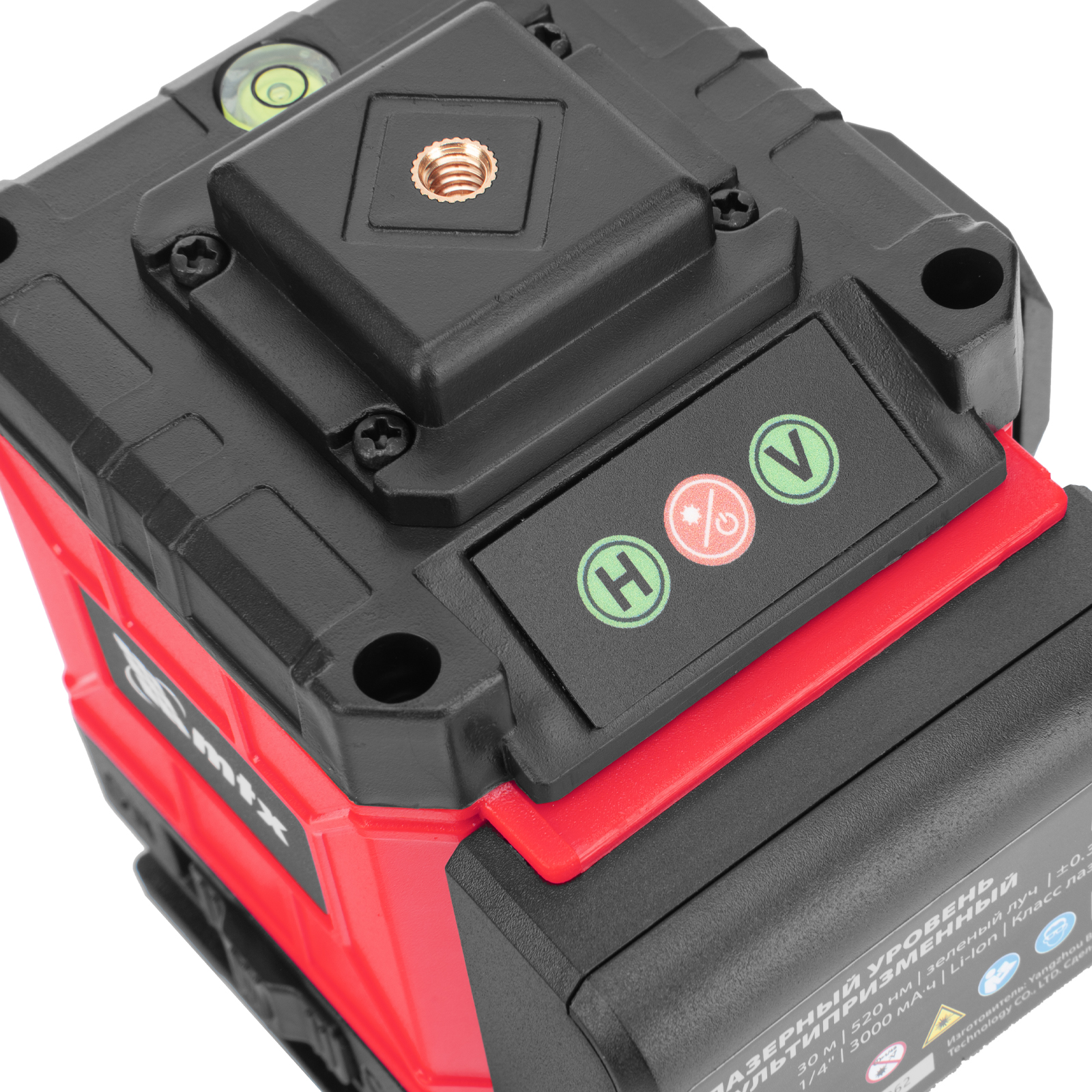 - Автовыравнивание — неровности в пределах ±4° компенсируются автоматически, в случае более значительного отклонения лазерные лучи начинают мигать и раздается звуковой сигнал.