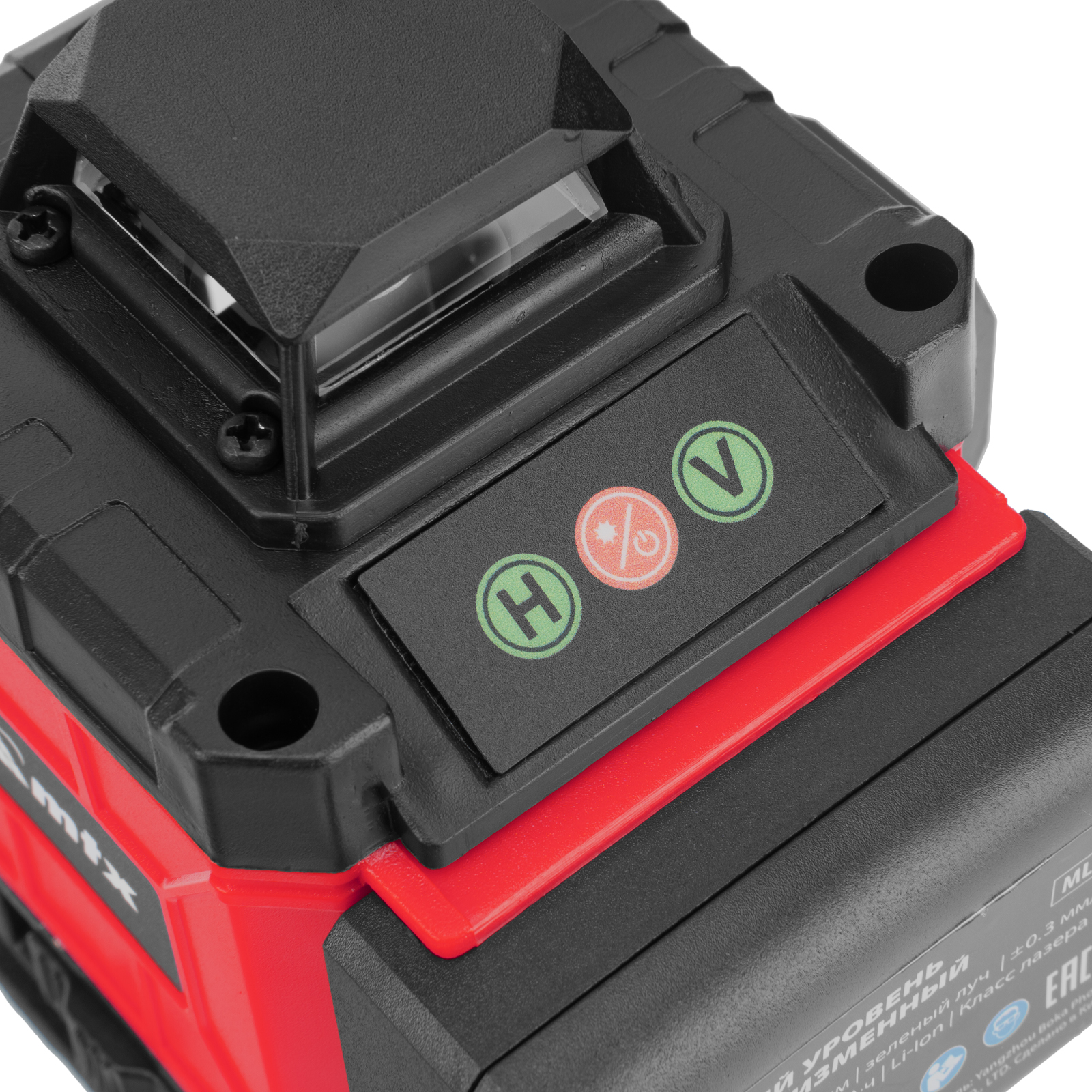 - Автовыравнивание — неровности в пределах ±4° компенсируются автоматически, в случае более значительного отклонения лазерные лучи начинают мигать и раздается звуковой сигнал.