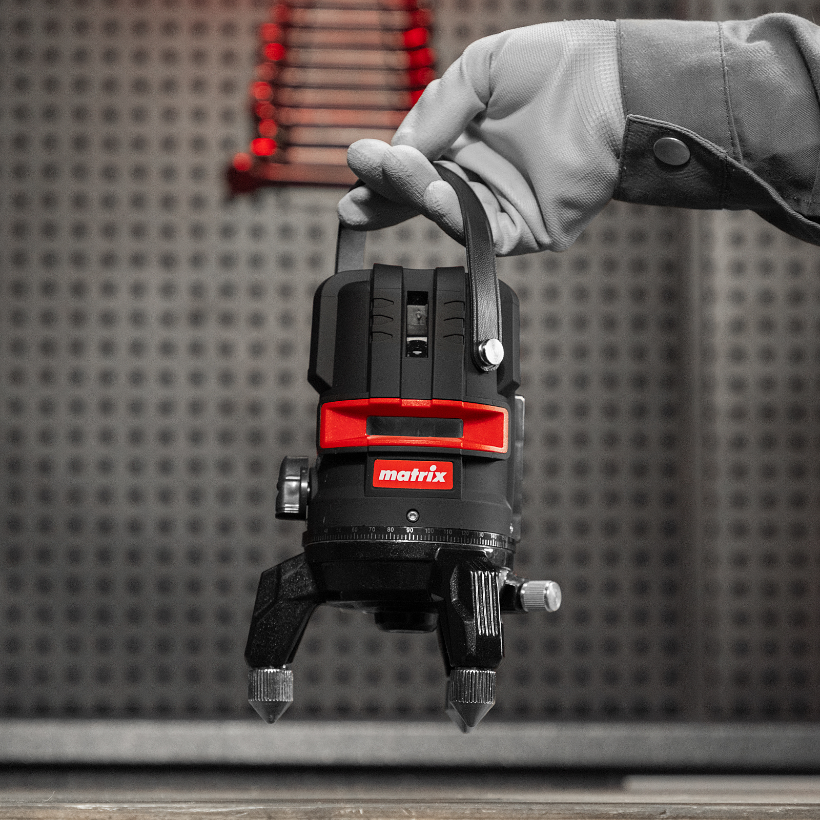 Лазерный уровень Matrix ML 05 Red 35066 с резьбой 5/8" под штатив проецирует горизонтальную и вертикальные линии, а также точку отвеса на расстоянии до 20 м при помощи красных лучей длиной 635 нм. Устройство работает от 3 батареек типа AA. С его помощью можно легко разметить все стены в помещении, чтобы ровно уложить кирпич и плитку, установить окна и двери, смонтировать подвесной потолок.