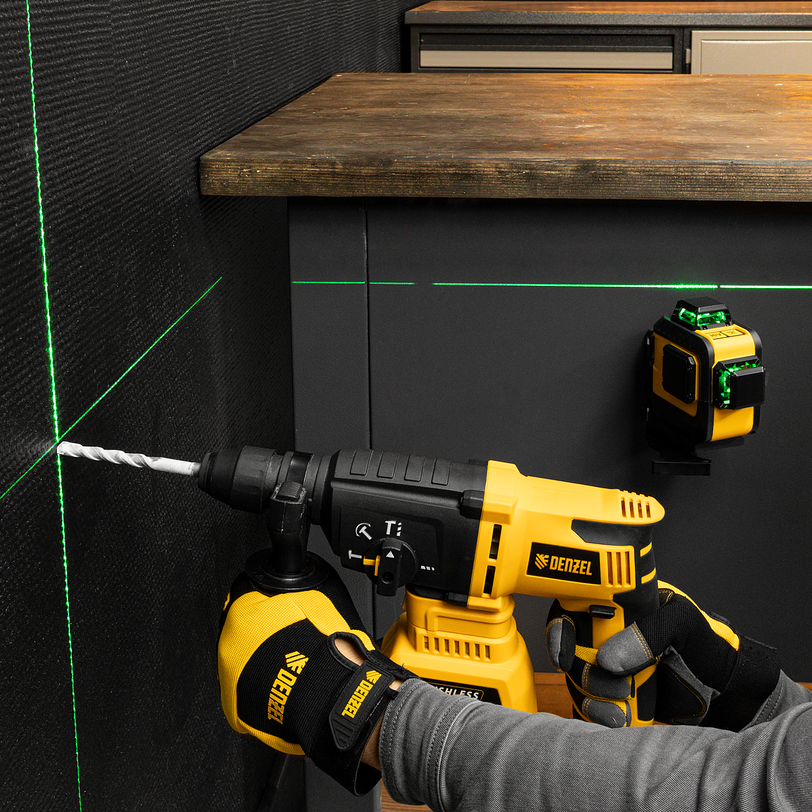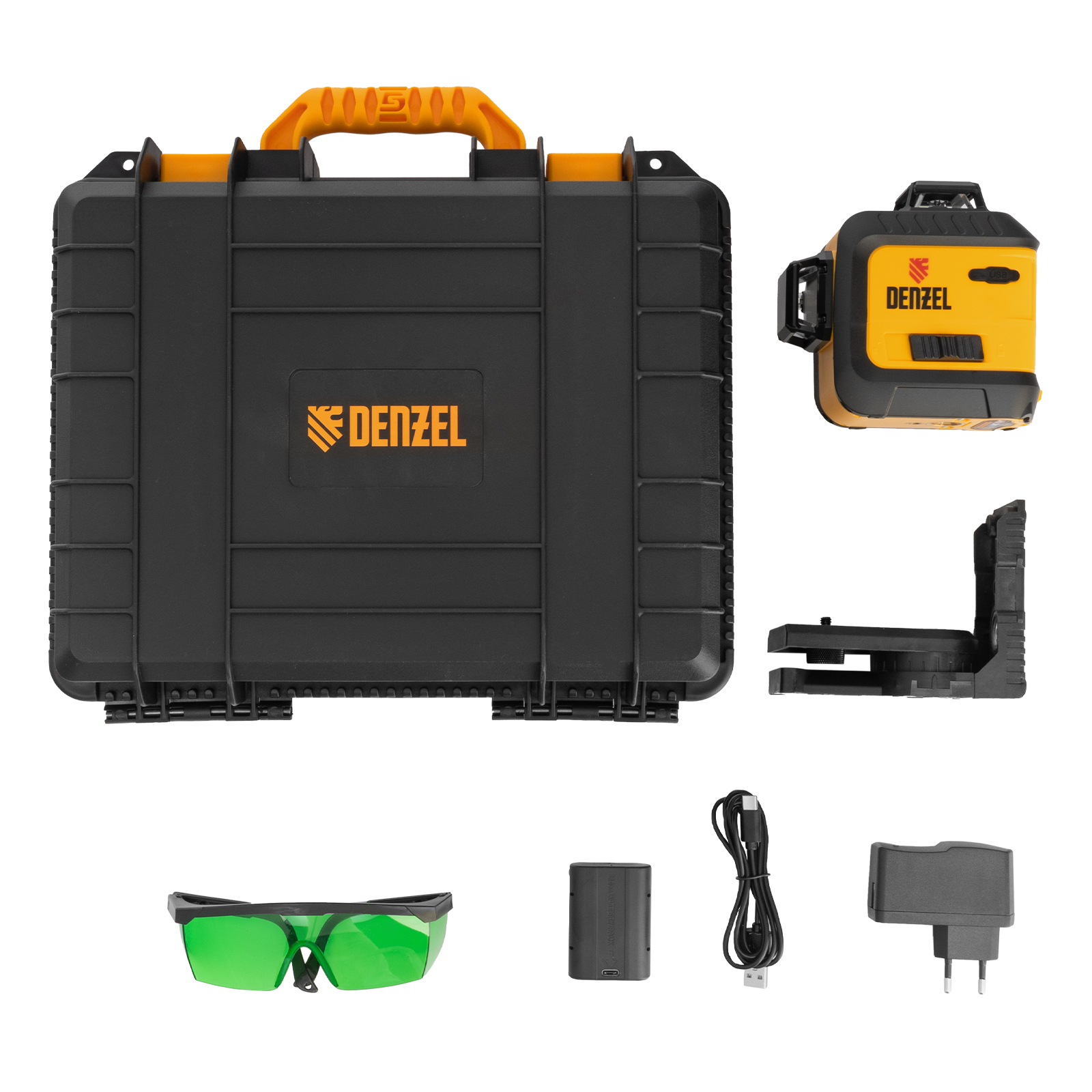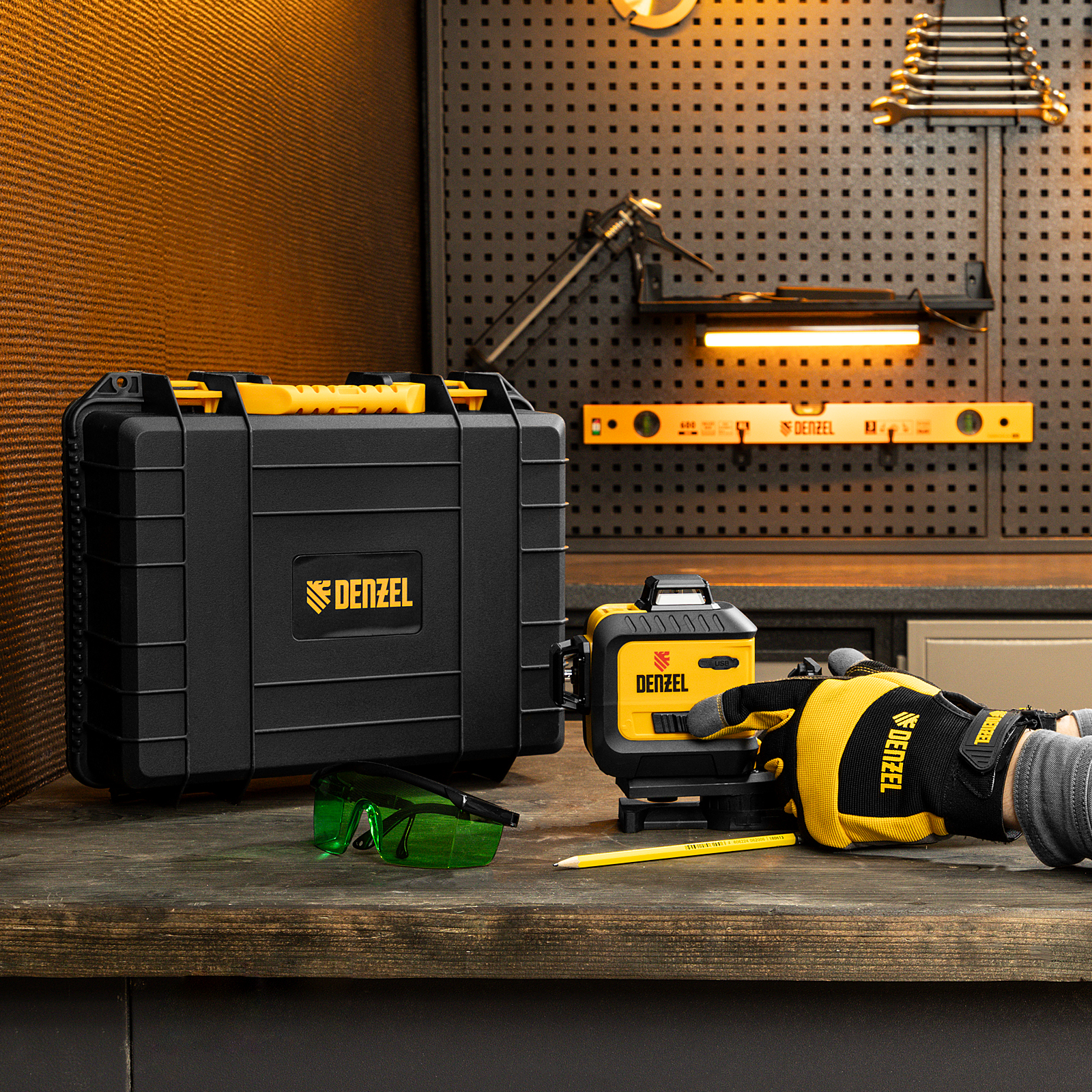 Мультипризменный лазерный уровень Denzel LXI 360-2 Green 35078 с резьбой под штатив 1/4″ проецирует 2 взаимно перпендикулярные линии с охватом в 360° на расстояние до 30 м при помощи зеленых лучей длиной 520 нм. Точность составляет ±0,3 мм/м. Уровень используется для построения разметки во время проведения отделочных и строительных работ. Подходит для площадки длиной до 60 м.