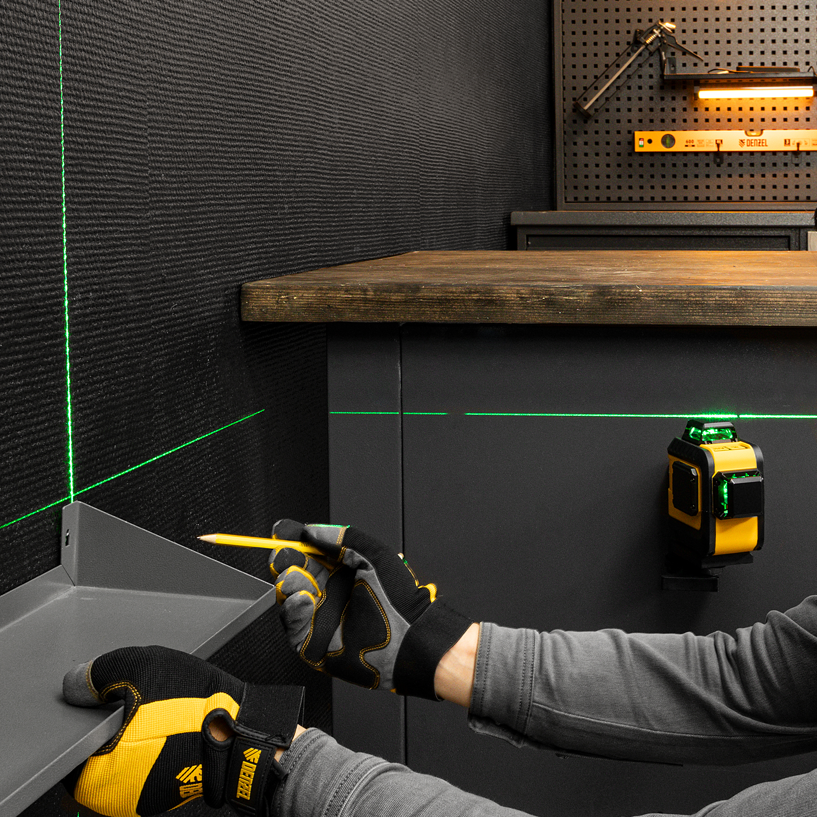 - Точная разметка — уровень имеет функцию самовыравнивания, в случае отклонения по горизонтали более чем на 4° срабатывает световое оповещение.