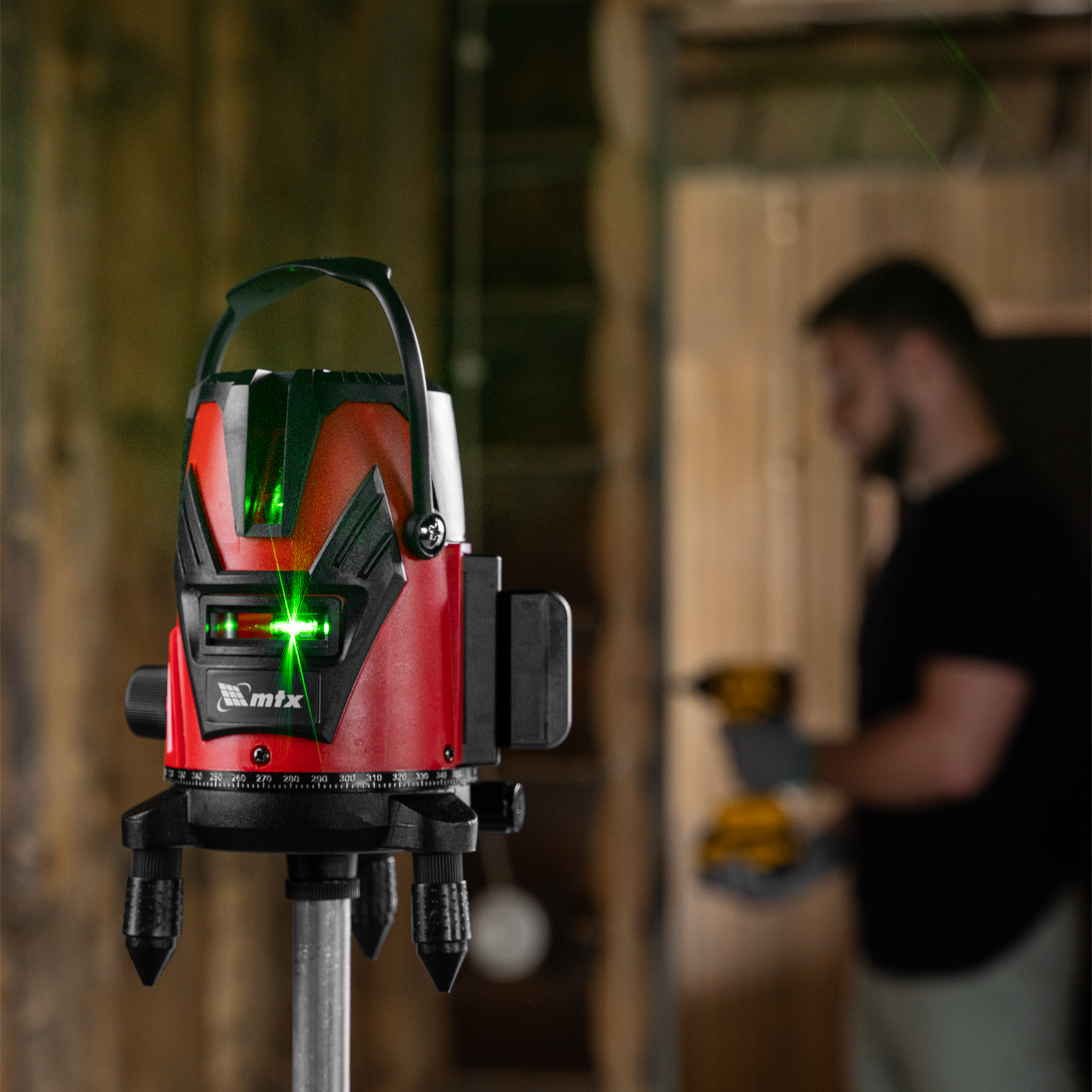 Лазерный уровень MTX MXL GREEN 35013 с резьбой под штатив 5/8″ поставляется с сумкой, работает от Li-Ion аккумулятора емкостью 2400 мА·ч и проецирует горизонтальную и вертикальную линии на расстояние до 30 м при помощи зеленых лучей с длиной волны 520 нм. Позволяет выровнять предметы, разметить фундамент и стены, упрощает установку опор, проведение отделочных работ, установку оконных рам и стенных шкафов, обустройство интерьера. Обеспечивает высокую точность разметки — погрешность составляет ±0,3 мм/м. Благодаря наличию уличного режима уровень эффективен как в помещении, так и вне его. Сенсорные кнопки управления и поворотное на 360° основание обеспечивают комфорт и эффективность работы.