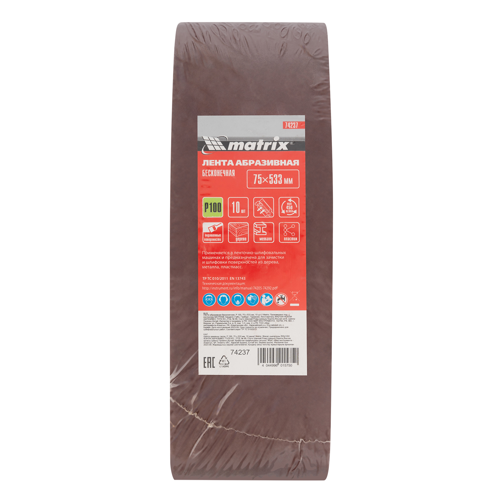 Бесконечная абразивная лента Matrix 74237 с зернистостью P 100, 10 шт. в упаковке, устанавливается на ленточную шлифовальную машину, совместимую со сменными элементами размером 75 х 533 мм. Применяется для чистовой обработки деревянных и металлических поверхностей, снятия тонкого слоя краски, ржавчины, удаления мелких заусенцев.