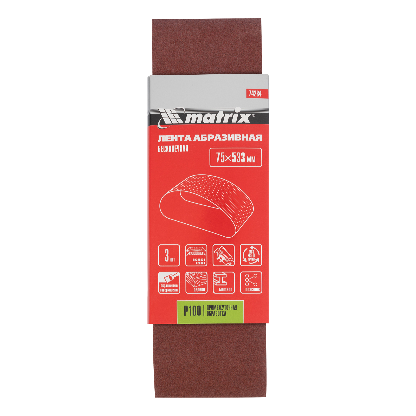 Абразивная лента Matrix 74284 зернистостью P 100 поставляется в наборе из 3 шт. и используется на ленточных шлифовальных машинах, совместимых со сменными элементами размером 75 х 533 мм. Применяется для чистовой обработки и получения гладкой поверхности деревянных, пластиковых и металлических предметов. Подходит для снятия тонкого слоя краски, ржавчины, удаления мелких заусенцев и т.д.