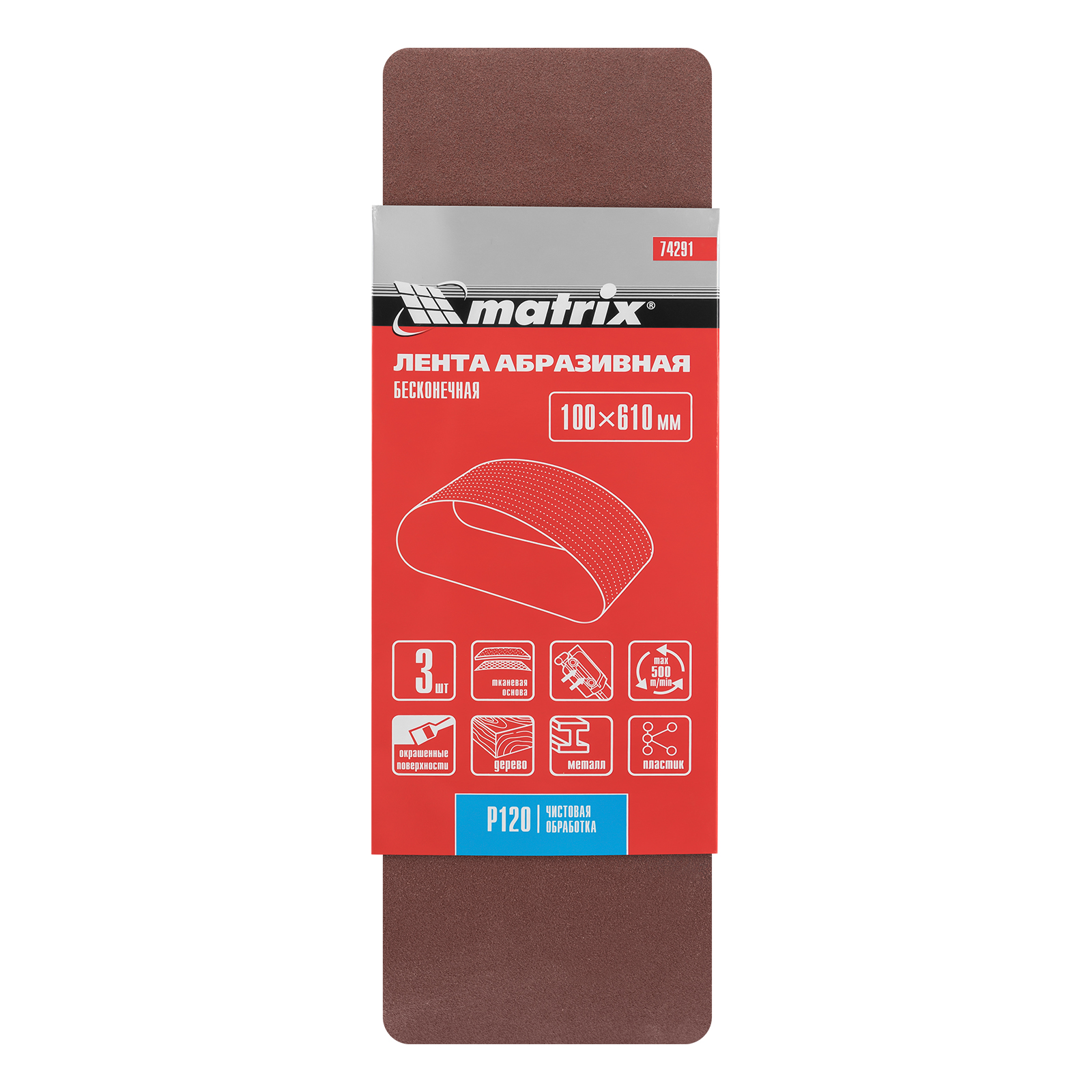 Бесконечная абразивная лента Matrix 74291 зернистостью P 120 поставляется в наборе из 3 шт. и используется на ленточных шлифовальных машинах, совместимых со сменными элементами размером 100 х 610 мм. Применяется для чистовой обработки деревянных и металлических поверхностей.