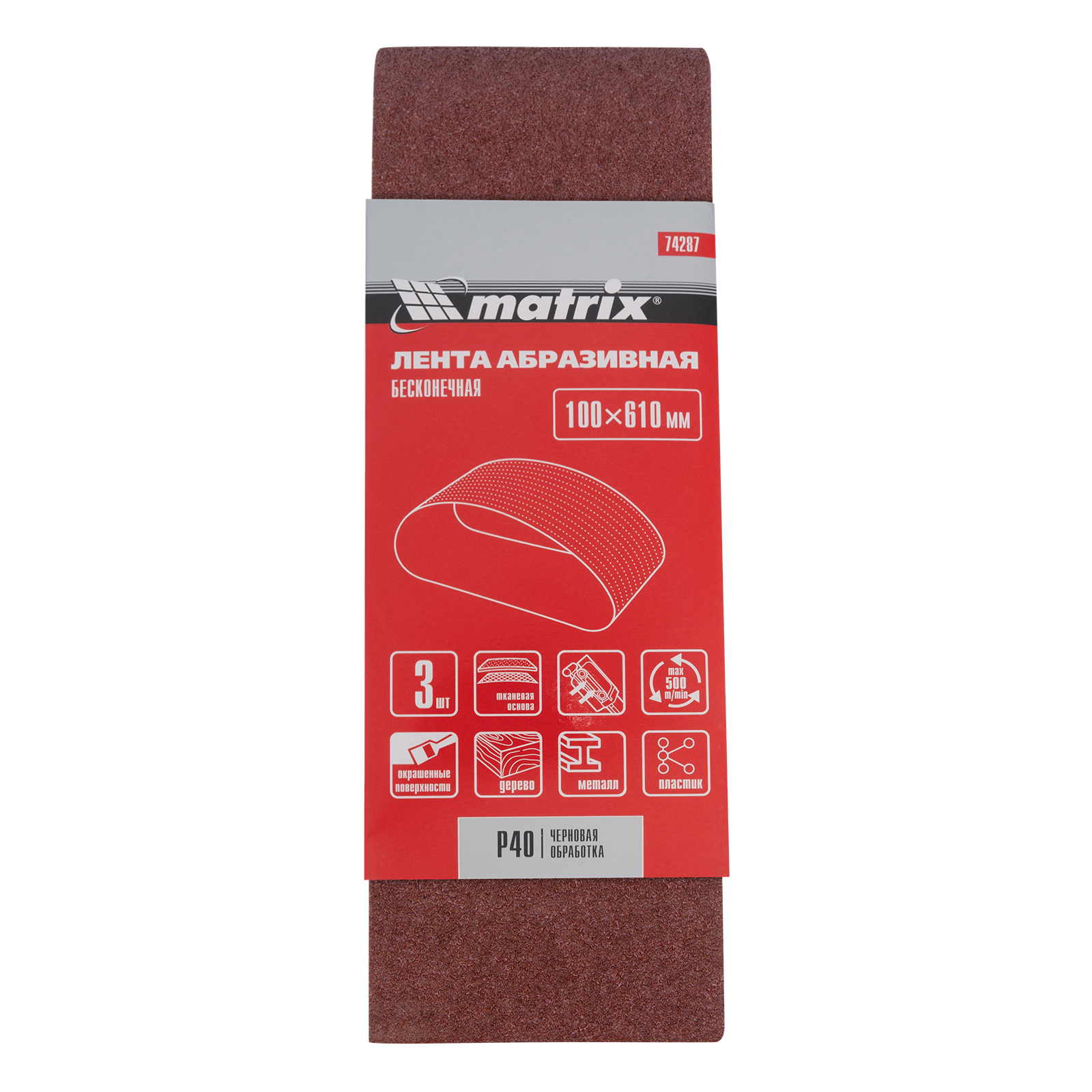 Абразивная лента Matrix 74287 зернистостью P 40 поставляется в наборе из 3 шт. и используется на ленточных шлифовальных машинах, совместимых со сменными элементами размером 100 х 610 мм. Применяется для черновой обработки деревянных, пластиковых и металлических поверхностей. Подходит для снятия лака, краски, ржавчины, заусенцев и т.д.