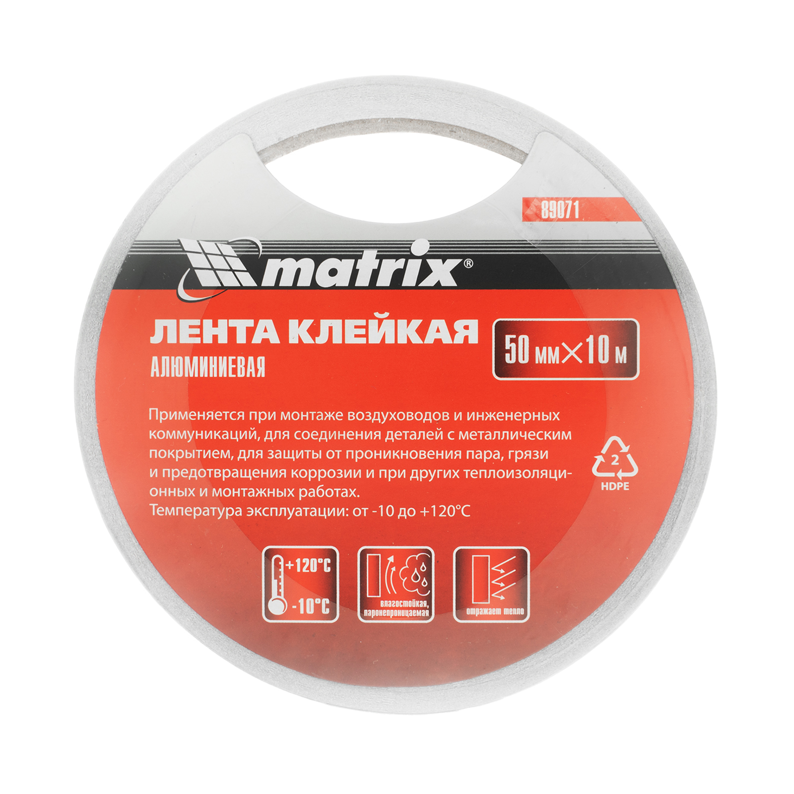Алюминиевая клейкая лента Matrix 89071 длиной 10 м и шириной 50 мм используется для защиты стыков и швов в системах вентиляции и кондиционирования. Водо- и воздухонепроницаемая фольга предотвращает попадание грязи, пыли, образование коррозии и плесени. Лента будет полезна для проведения ремонтных, строительных и изоляционных работ.