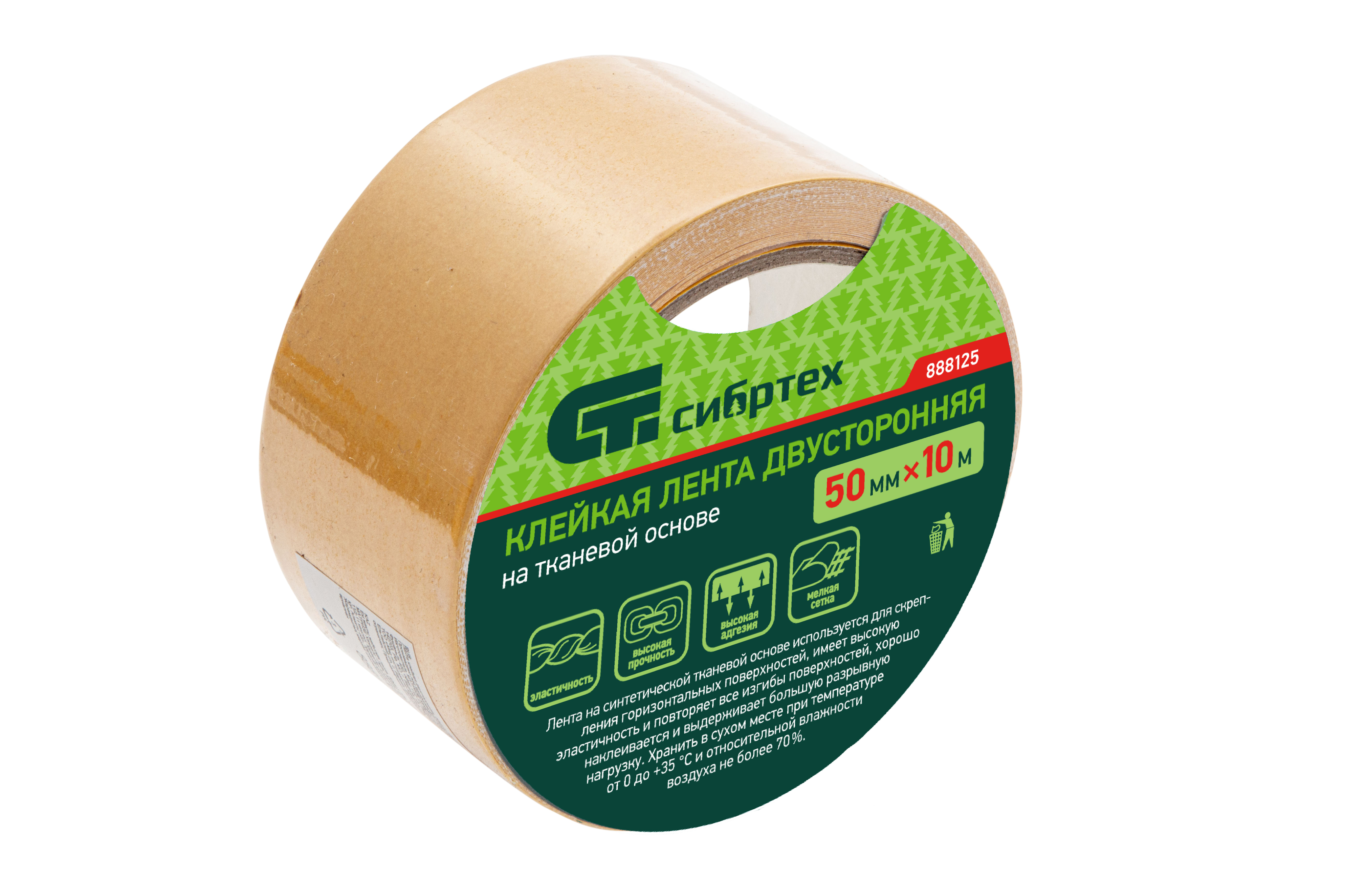 Лента клейкая двусторонняя, 50 мм х 10 м, на тканевой основе Сибртех