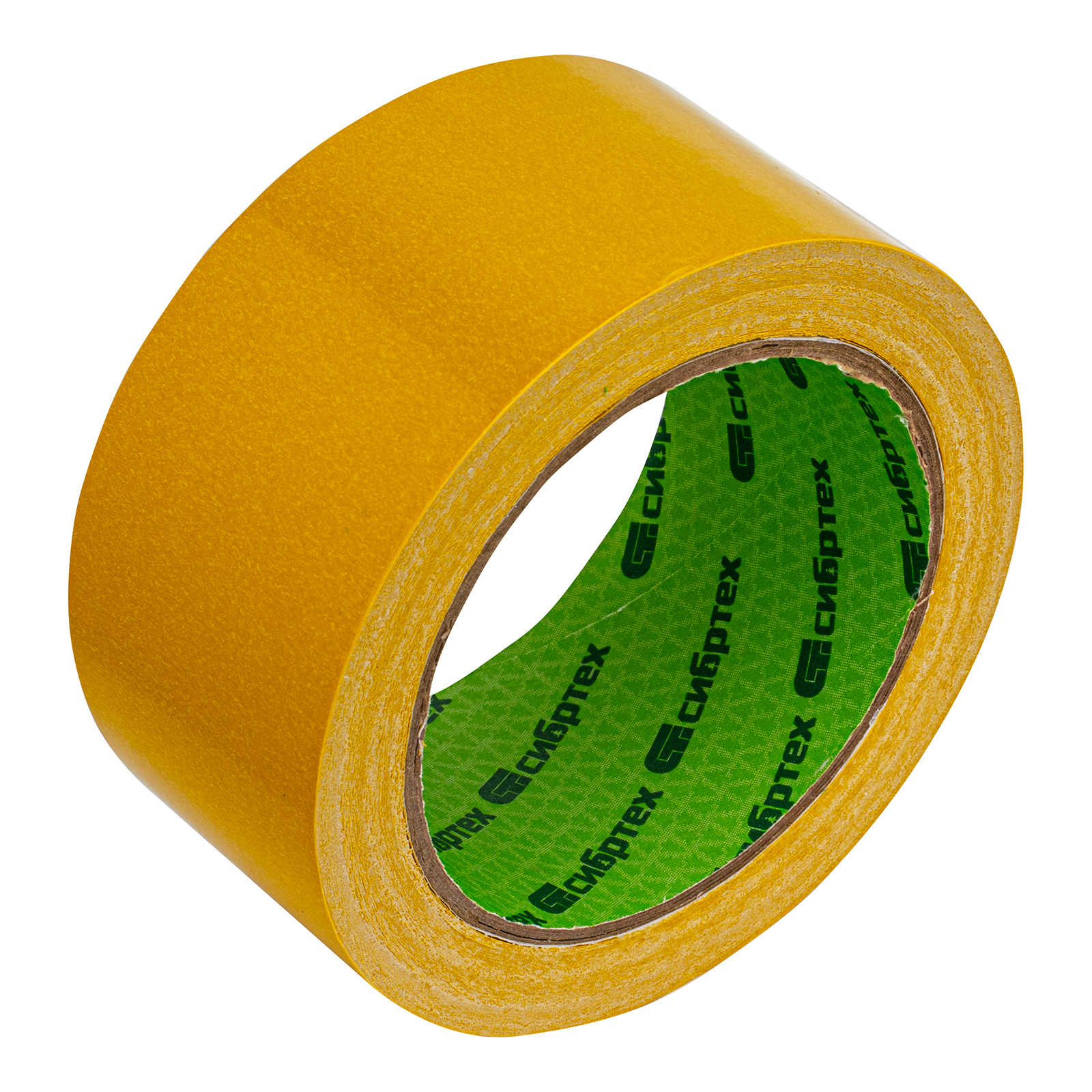 Клейкая двусторонняя лента Сибртех 88809 размером 50 мм х 25 м, на полипропиленовой основе, надежно крепится к горизонтальным и вертикальным поверхностям, которые не подвергаются сильным механическим нагрузкам. Благодаря высоким адгезионным свойствам лента подходит для работы с самыми разными материалами: картоном, деревом, пластиком, резиной, стеклом, металлом. Пригодится для занятий дизайном, а также решения различных задач в быту.
