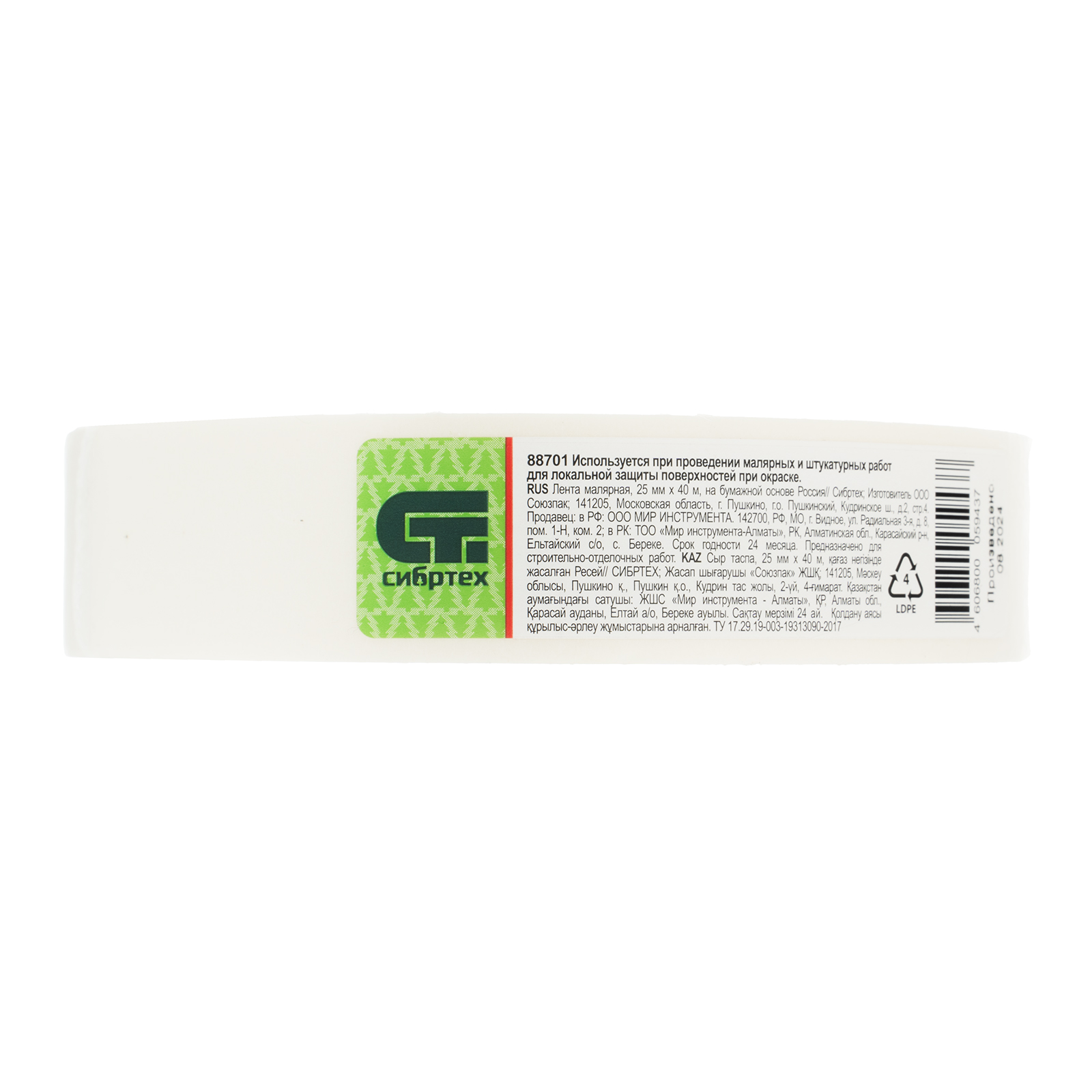 <p>Малярная лента Сибртех 88701 шириной 25 мм и длиной намотки 40 м, на бумажной основе, пригодится для внутренних малярных работ с ЛКМ любого типа, а также для склеивания книг, альбомов и других бумажных предметов. Повышает качество окрашивания, т.к. предотвращает растекание краски, при этом надежно клеится и без труда удаляется, не оставляя следов на поверхностях.</p><h2>Преимущества</h2><ul><li>Удобное использование — благодаря бумажной основе на ленте можно делать пометки при необходимости.</li><li>Высокое качество выполнения точных работ — ширина ленты составляет 25 мм.</li><li>Экологичность — лента намотана на картонно-бумажную втулку, утилизация которой безвредна для окружающей среды.</li><li>Длина 40 м — одной намотки хватит для решения большого объема задач.</li><li>Надежная упаковка — лента поставляется в термоусадочной пленке для бережной транспортировки.</li></ul>