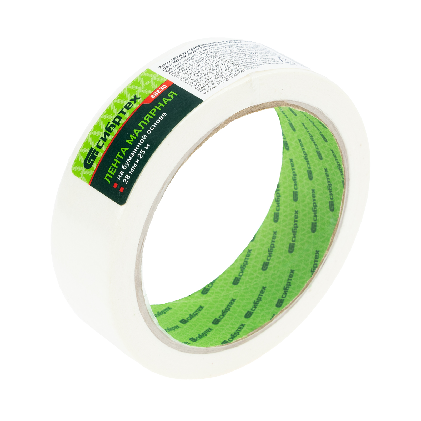 <p>Малярная лента Сибртех 88830 шириной 28 мм и длиной намотки 25 м, на бумажной основе, пригодится для внутренних малярных работ с ЛКМ любого типа, а также для склеивания книг, альбомов и других бумажных предметов. Повышает качество окрашивания, т.к. предотвращает растекание краски, при этом надежно клеится и без труда удаляется, не оставляя следов на поверхностях.</p><h2>Преимущества</h2><ul><li>Удобное использование — благодаря бумажной основе на ленте можно делать пометки при необходимости.</li><li>Экологичность — лента намотана на картонно-бумажную втулку, утилизация которой безвредна для окружающей среды.</li><li>Длина 25 м — одной намотки хватит для решения большого объема задач.</li><li>Надежная упаковка — лента поставляется в термоусадочной пленке для бережной транспортировки.</li></ul>