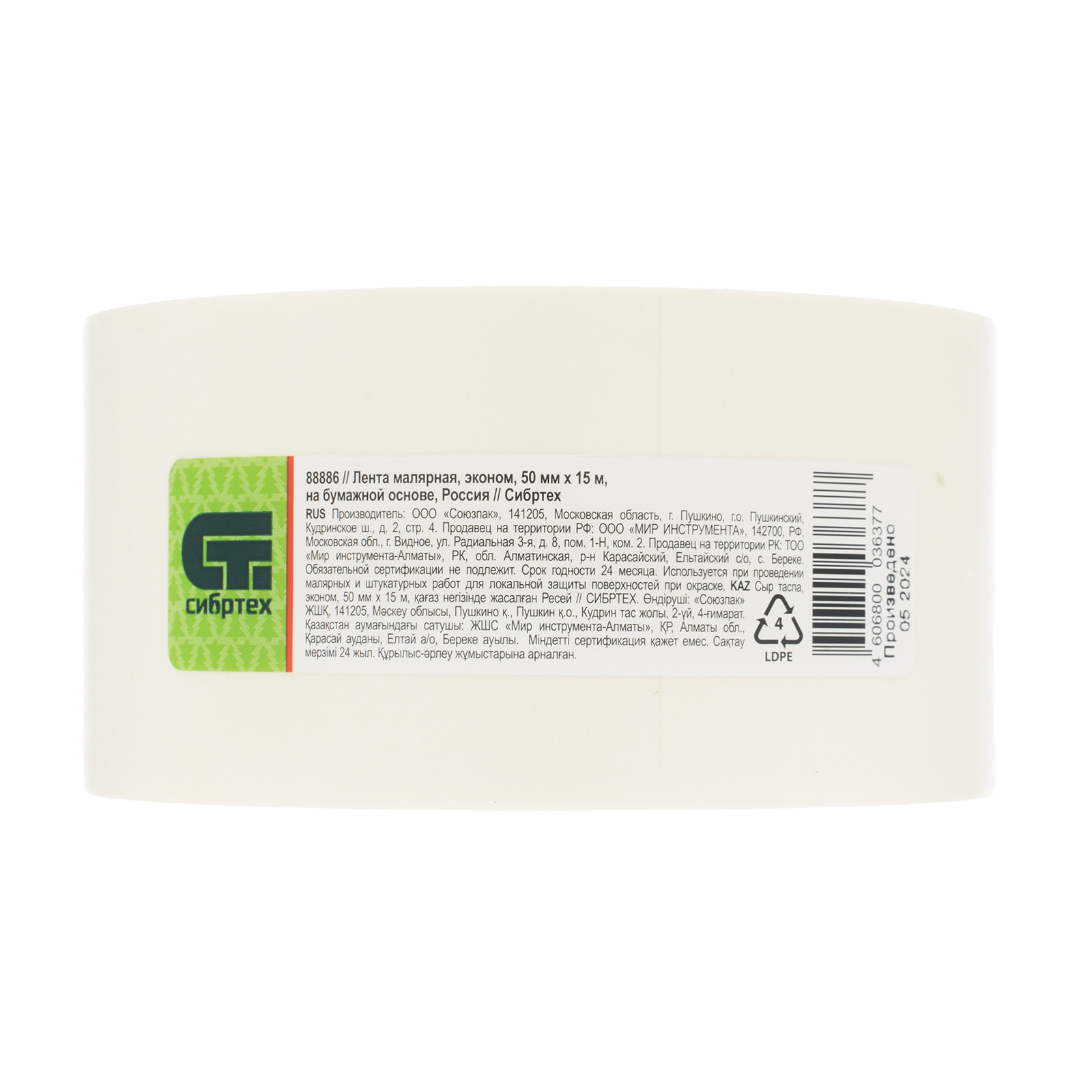 Малярная лента Сибртех эконом 88886 шириной 48 мм и длиной 15 м, на бумажной основе, значительно облегчает малярные работы. Благодаря ей краска не попадает на другие участки, что упрощает и ускоряет окрашивание. Ленту можно использовать при работе с любыми ЛКМ, а также для склеивания бумаги, например, книг.