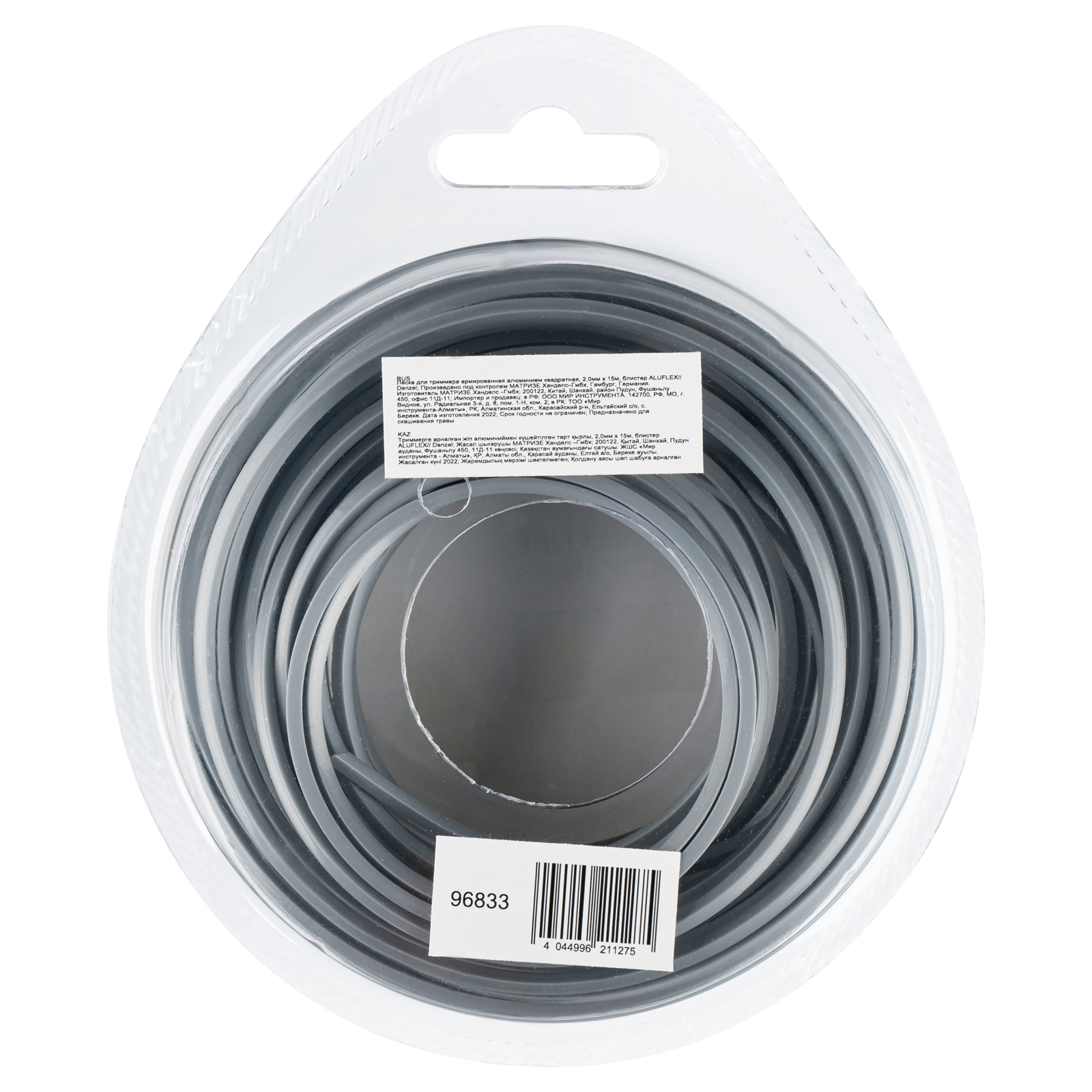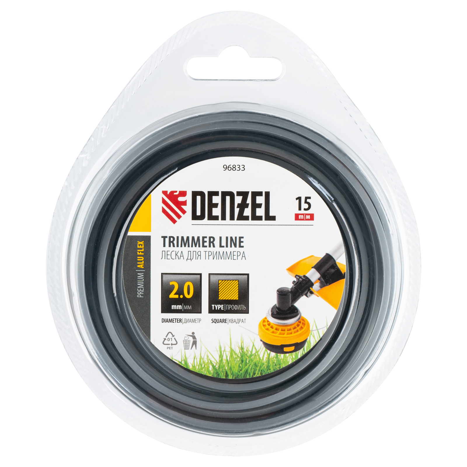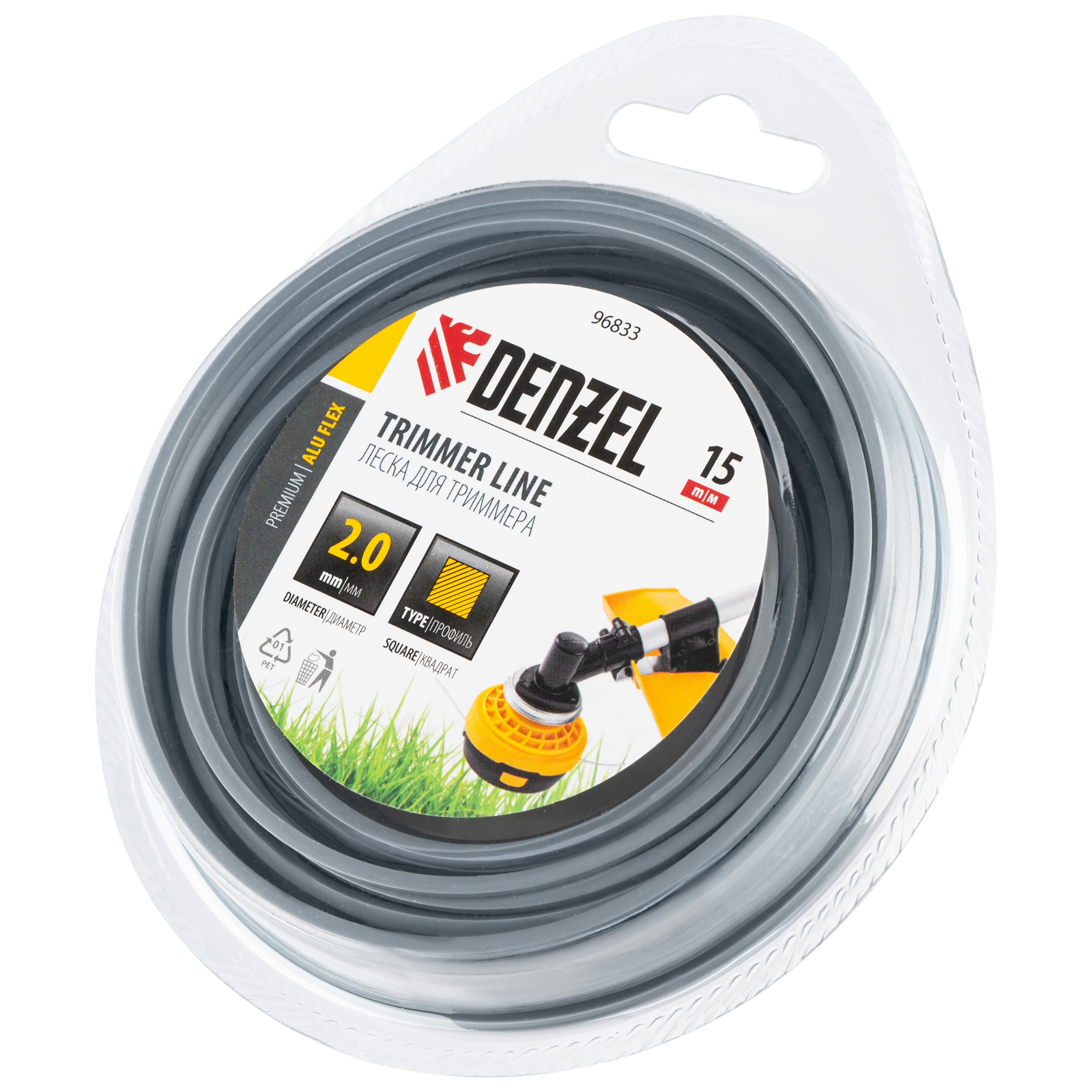 Армированная алюминием леска для триммера Denzel ALUFLEX 96833 квадратного сечения, толщиной 2,0 мм и длиной 15 мм, в блистере, предназначена для скашивания густой травы и растений с толстыми стеблями. Отличается повышенной износостойкостью. Заправляется в катушку электрического триммера или бензотриммера с объемом двигателя 25-52 см3. Леска будет полезна владельцам дачных участков.