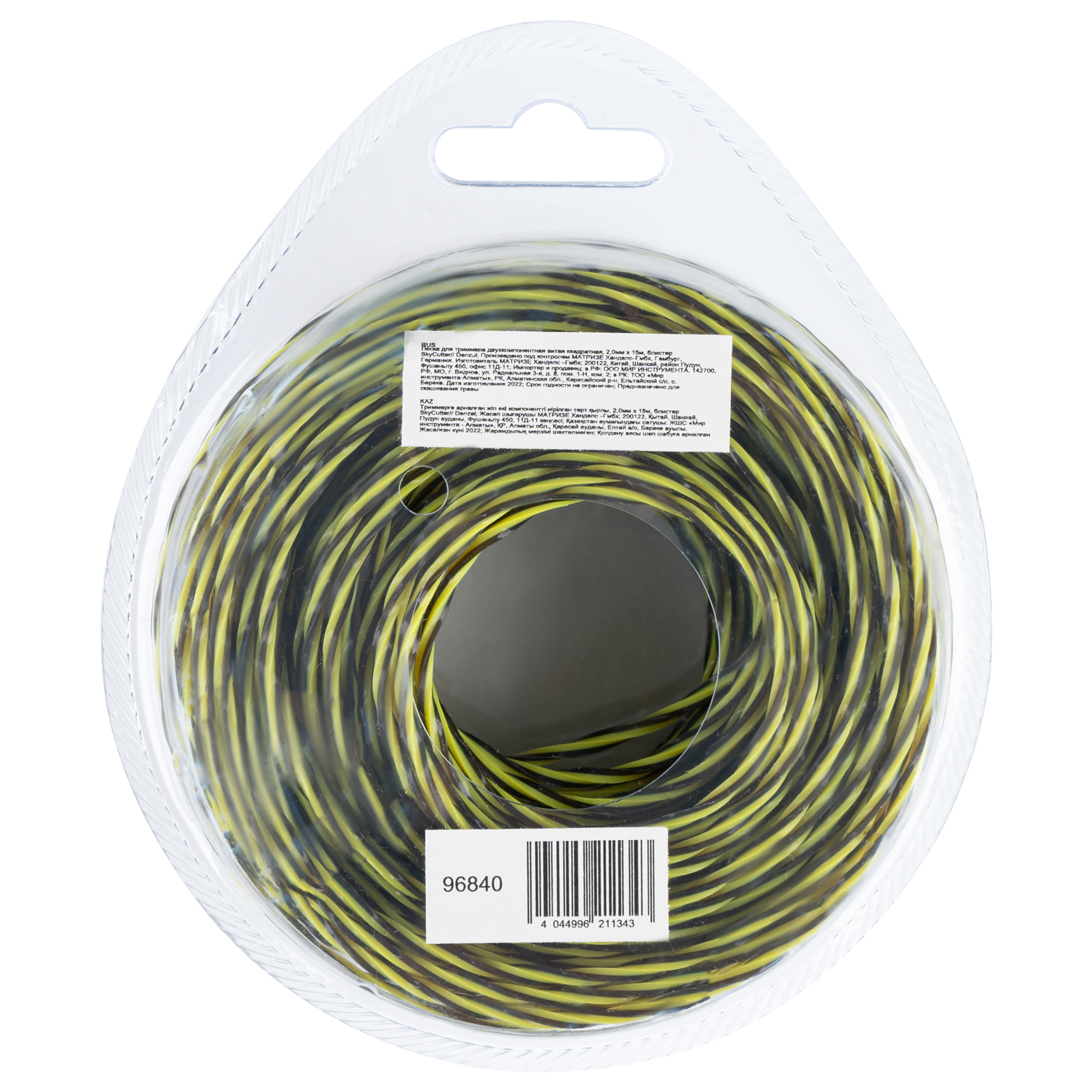 <p>Витая квадратная леска для триммера Denzel SkyCutter 96840 с двухкомпонентной структурой, 2,0 мм х 15 м, в блистере, — расходный материал для электротриммеров и бензиновых триммеров с объемом двигателя 25-52 см3. Благодаря агрессивному профилю леска обеспечивает высокую скорость работы, эффективно скашивая густую траву, сорняки, а также растения с жесткими стеблями. Пригодится владельцам дачных участков.</p><h2>Преимущества</h2><ul><li>Надежность — леска изготовлена из высокопрочного полиамида PA6 с добавлением полиамида BASF.</li><li>Высокий ресурс — 2 нити разной жесткости увеличивают пластичность и износостойкость корда.</li><li>Эффективность — благодаря острым граням леска легко и быстро срезает траву.</li><li>Продуманная упаковка — блистер удобен для хранения и транспортировки.</li></ul>