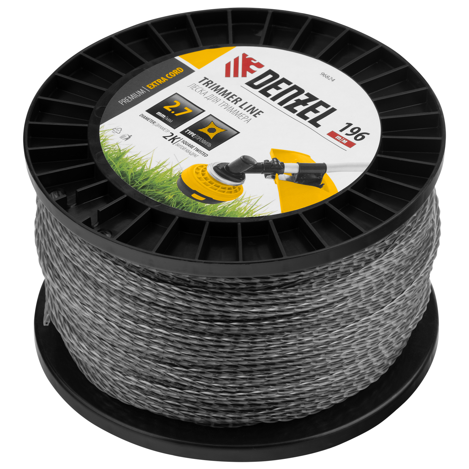 Двухкомпонентная леска для триммера Denzel EXTRA CORD 96824 размером 2,7 мм х 196 м, с сечением «витой квадрат», на DIN-катушке, используется для скашивания густых зарослей травы и сорных растений на дачном участке и придомовой территории. Предназначена для бензотриммеров с объемом двигателя 25-52 см3. Устойчива к излому, что облегчает ее заправку в катушку. Благодаря острым граням леска успешно справляется с толстыми, жесткими стеблями, позволяя быстро обработать участок большой площади.