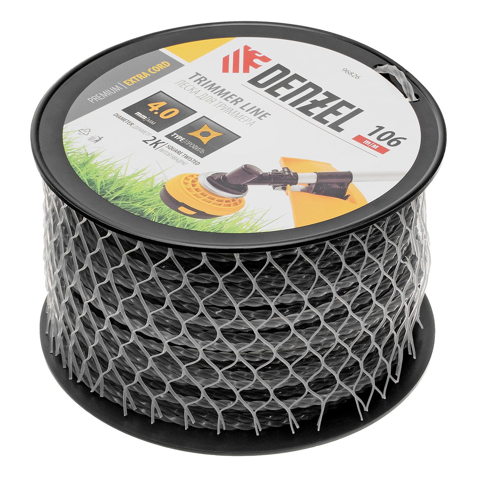 Двухкомпонентная леска для триммера Denzel EXTRA CORD 96826 толщиной 4,0 мм и длиной 106 м, на DIN-катушке, имеет сечение «витой квадрат» и предназначена для скашивания крупностеблевой растительности, мелких кустарников и сорняков. Эффективна даже при использовании на замусоренной территории. Используется на бензотриммерах с объемом двигателя более 52 см3.