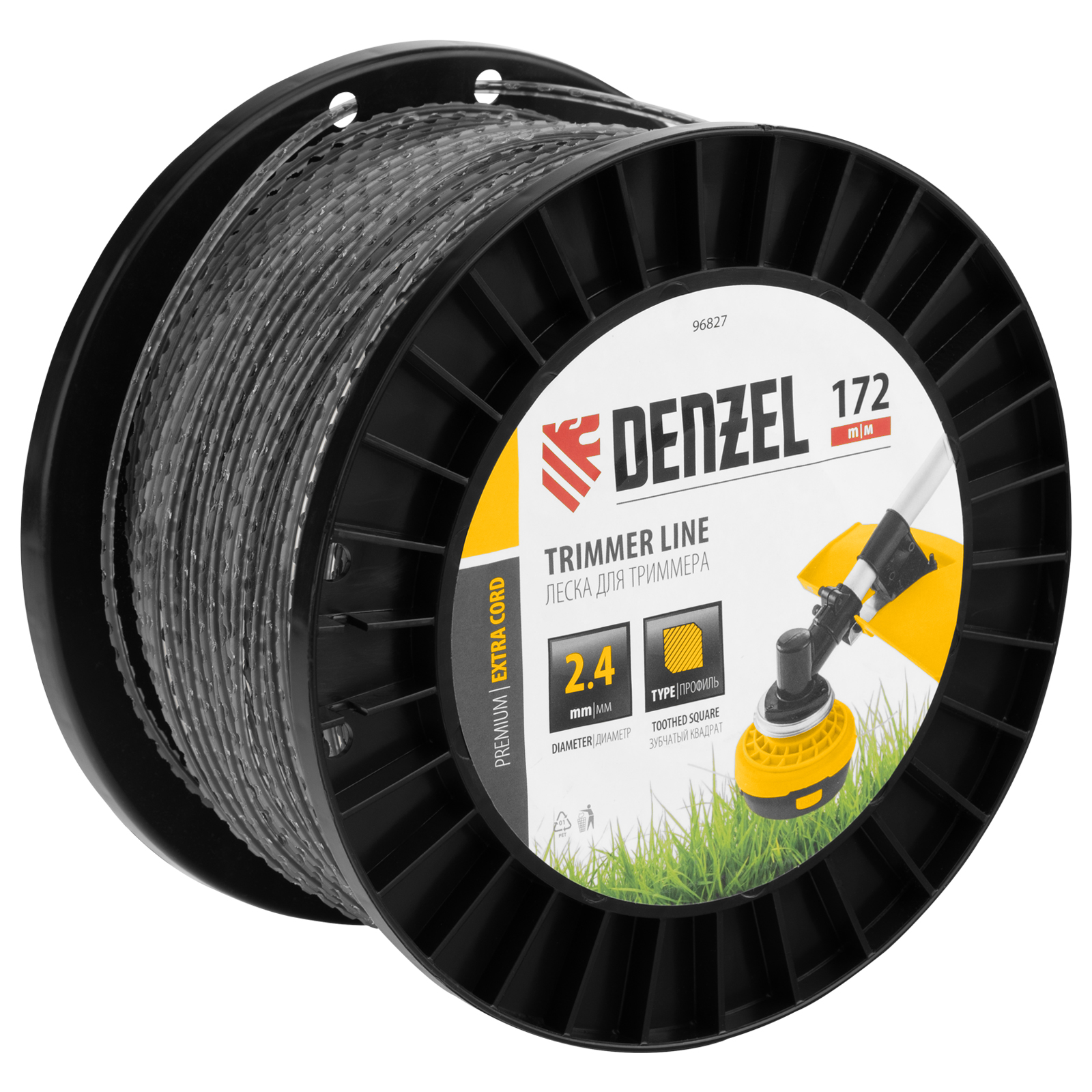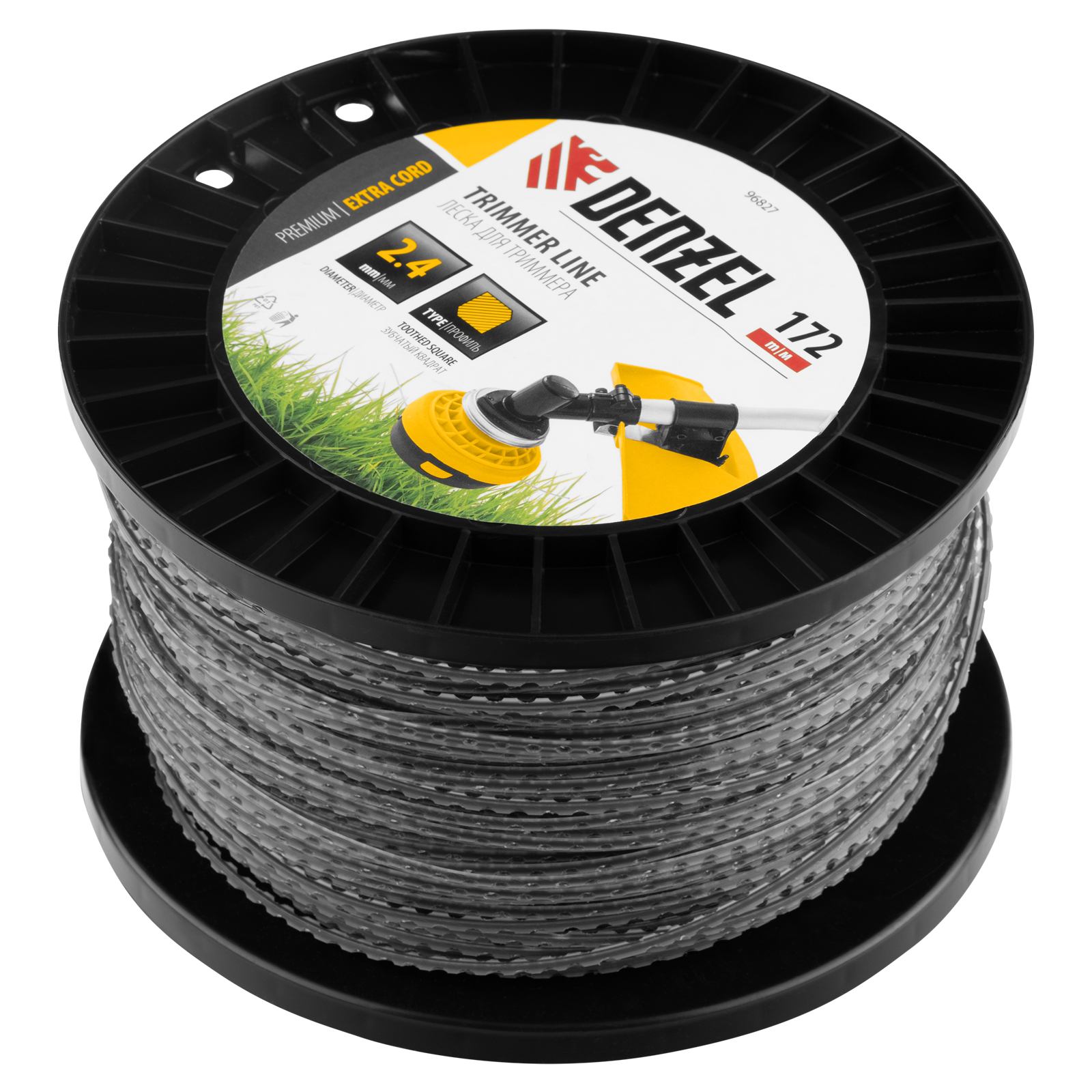 Двухкомпонентная леска для триммера Denzel EXTRA CORD 96827 размером 2,4 мм х 172 м, на DIN-катушке, имеет сечение «зубчатый квадрат», благодаря чему отличается повышенной агрессивностью реза. Эффективно скашивает густую траву и сорные растения с толстыми жесткими стеблями. Совместима с электротриммерами и бензокосами с объемом двигателя 25-52 см3. Леска подходит для ухода за газоном на дачном участке, в парках, скверах, на придомовой территории.