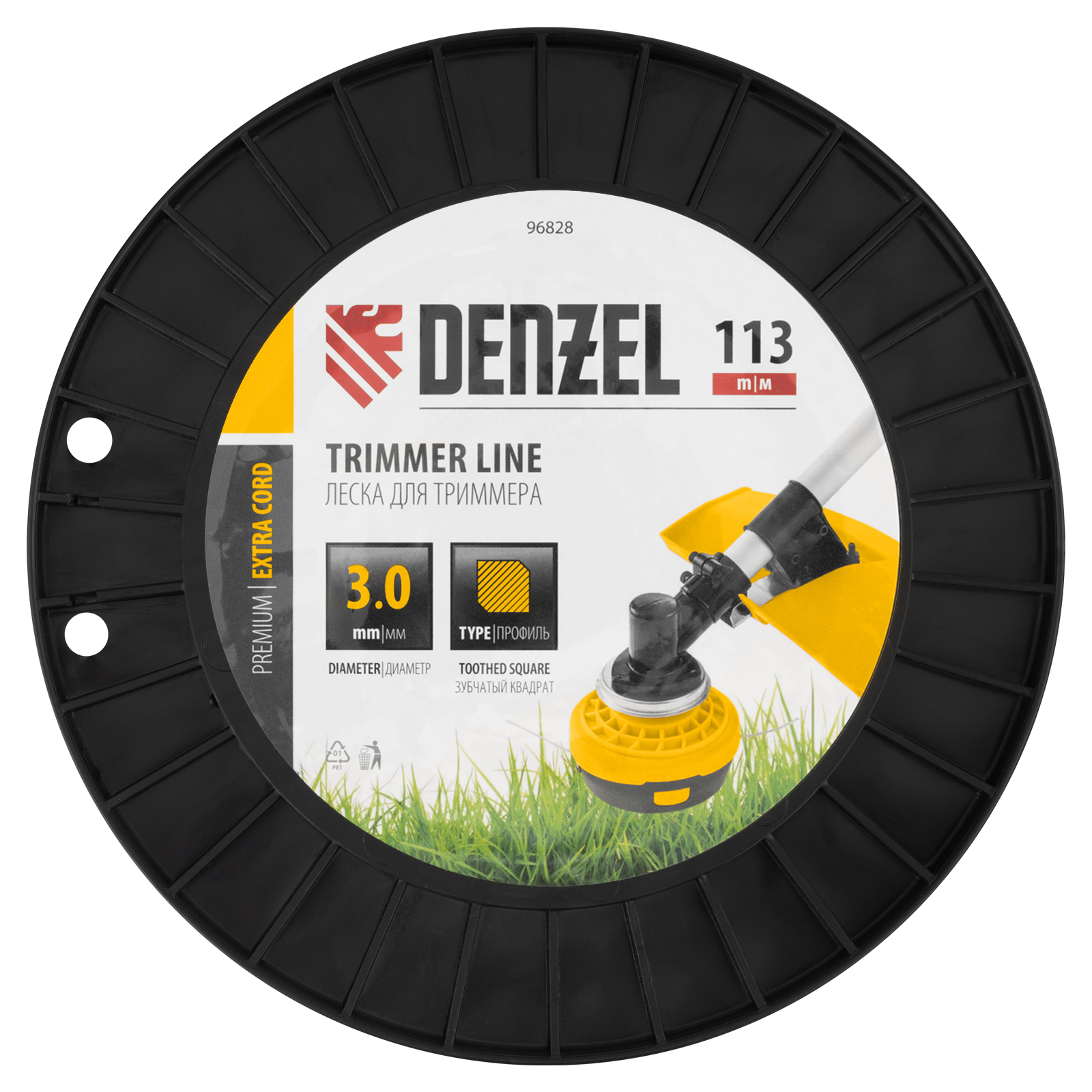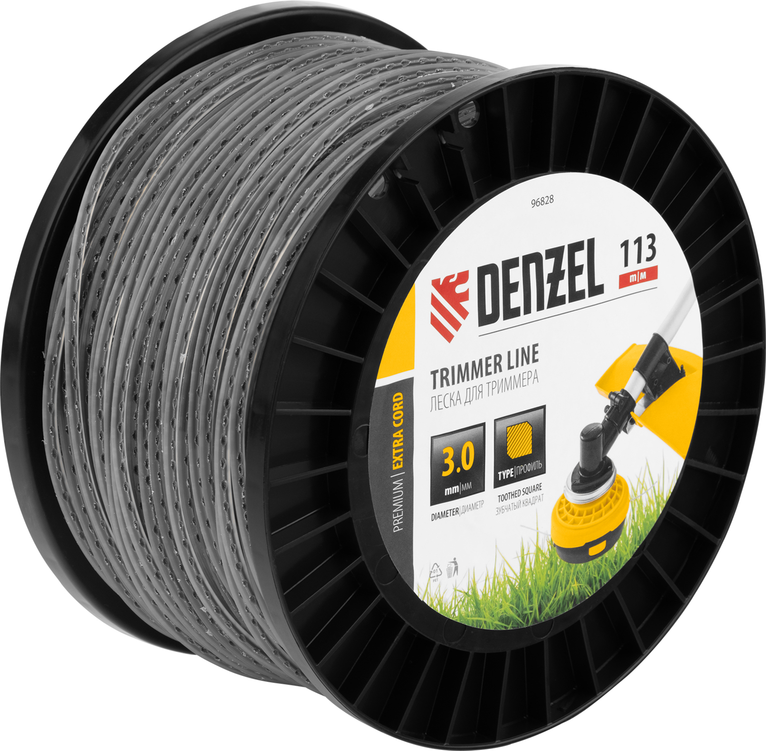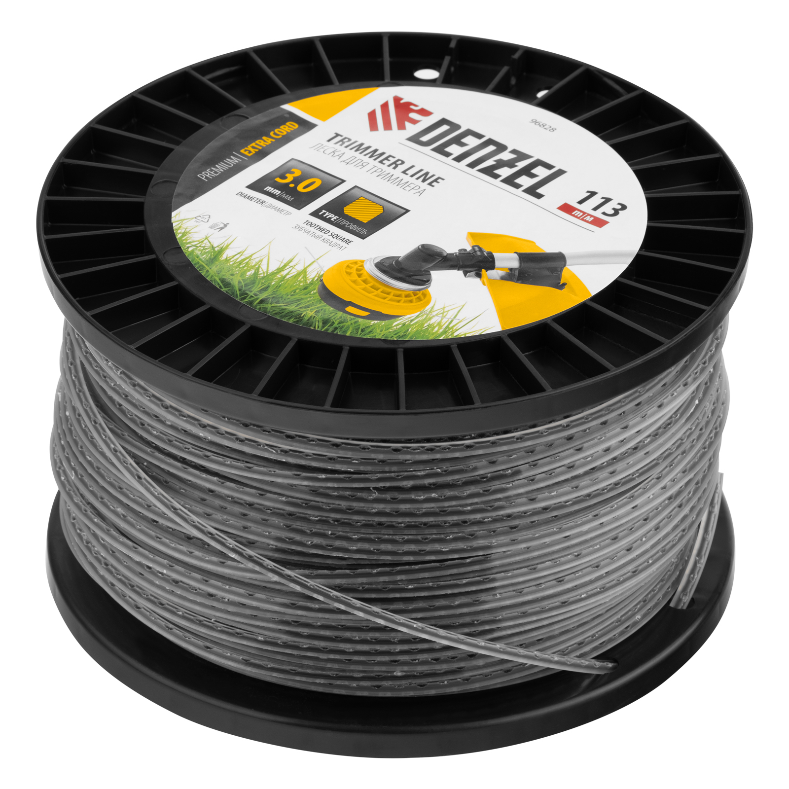 Двухкомпонентная леска для триммера Denzel EXTRA CORD 96828 размером 3,0 мм х 113 м, на DIN-катушке, имеет сечение «зубчатый квадрат», благодаря чему отличается повышенной агрессивностью реза. Эффективно скашивает густую траву и сорные растения с толстыми жесткими стеблями. Совместима с бензокосами с объемом двигателя 25-52 см3. Леска подходит для ухода за газоном на дачном участке, в парках, скверах, на придомовой территории.