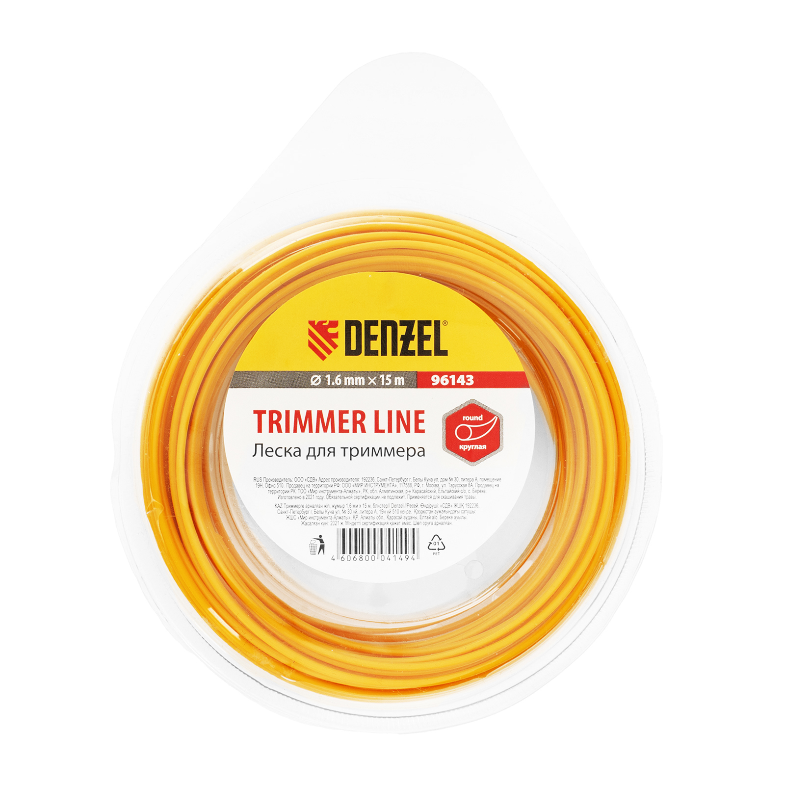 Леска для триммера круглая, 1.6 мм х 15 м Denzel