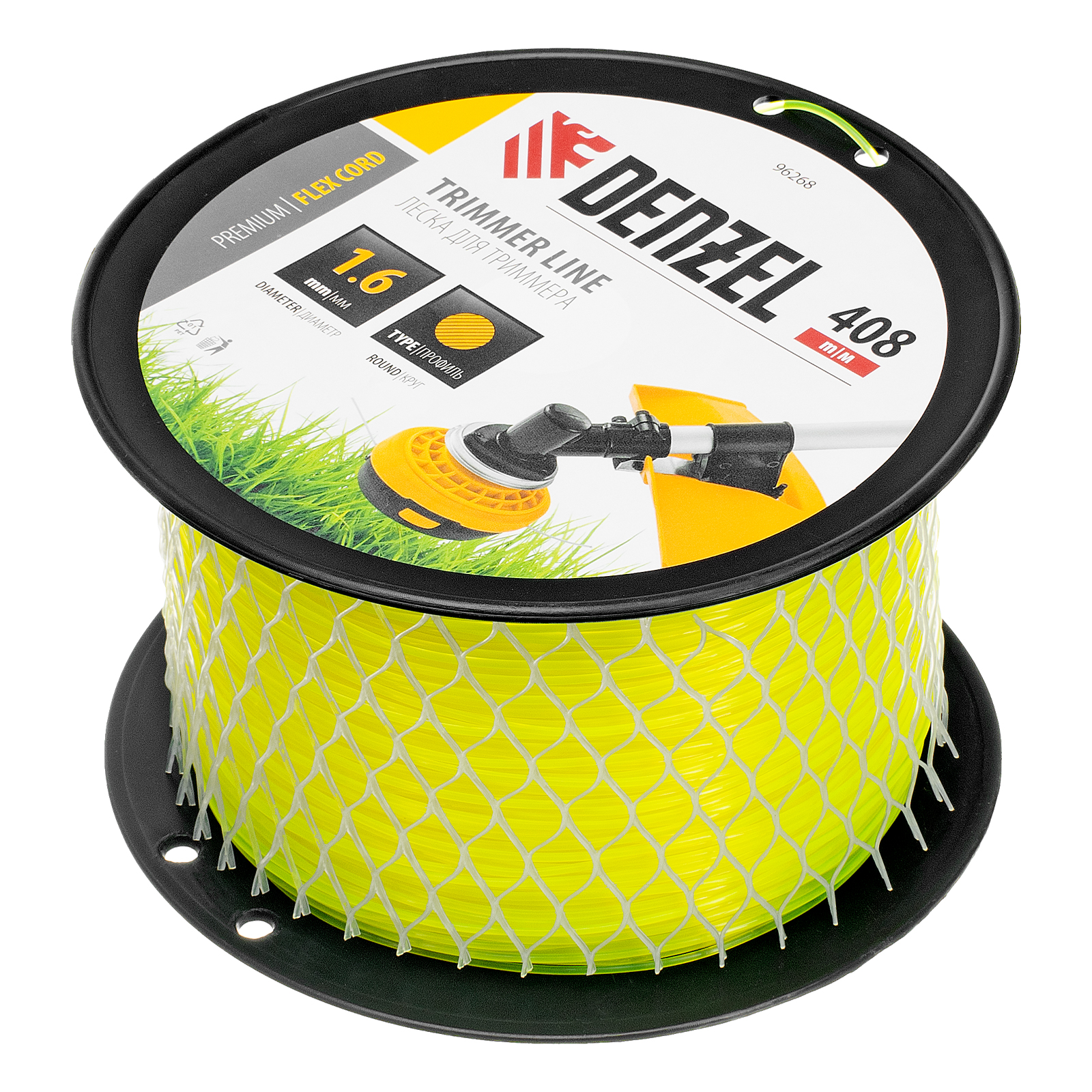 Леска для триммера Denzel FLEX CORD 96268 круглого сечения, диаметром 1,6 мм и длиной 408 м, на DIN-катушке, предназначена для скашивания мягкой, молодой травы. Подходит для электрических триммеров мощностью от 1 до 1,5 кВт.