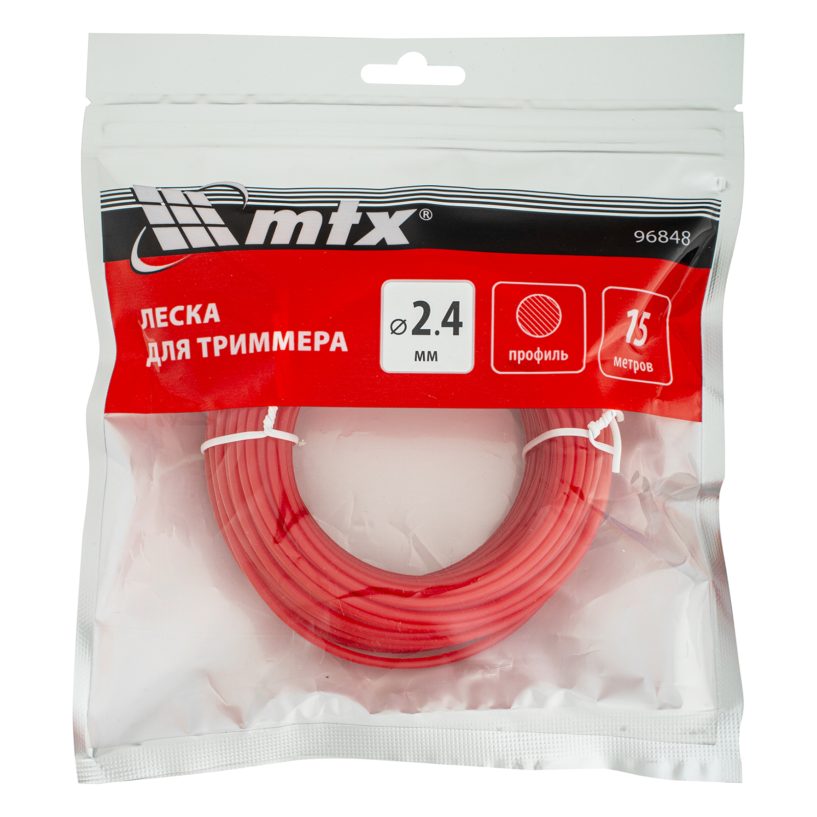 Леска для триммера MTX 96848 круглого сечения, диаметром 2,4 мм и длиной 15 м, предназначена для скашивания травы любой жесткости. Совместима с бензиновыми триммерами. Пригодится владельцам дачных участков и сотрудникам служб ЖКХ.