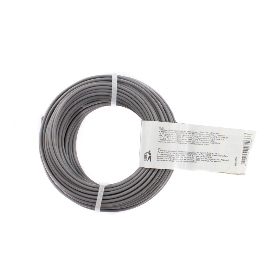 Армированная алюминием леска Сибртех 961915 размером 1,6 мм х 15 м, круглого сечения предназначена для триммеров с бензиновым и электрическим двигателем. Обеспечивает быстрый и качественный покос любого типа травы, толстых стеблей борщевика, лопухов, высоких сорняков. Материал лески содержит частицы алюминия, что делает ее более плотной и износоустойчивой. Корд может использоваться сотрудниками коммунальных служб для облагораживания парков, улиц, сложных участков вдоль автострад и железнодорожной насыпи.