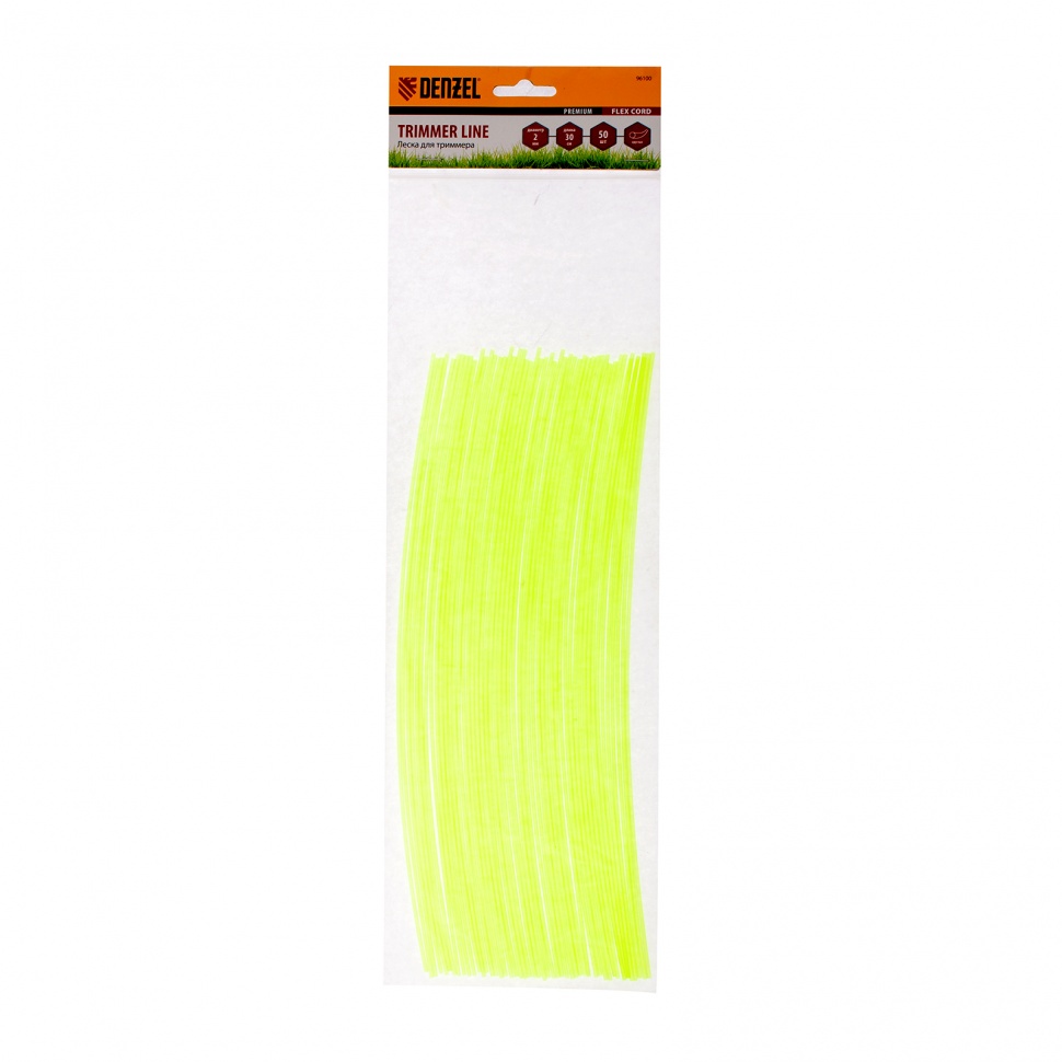 Круглая нарезанная леска для триммера Denzel FLEX CORD 96100 диаметром 2 мм и длиной 30 см, 50 шт. в уп., применяется для скашивания газонной травы и мелких сорняков. Используется на электротриммерах мощностью от 1000 Вт и бензотриммерах.