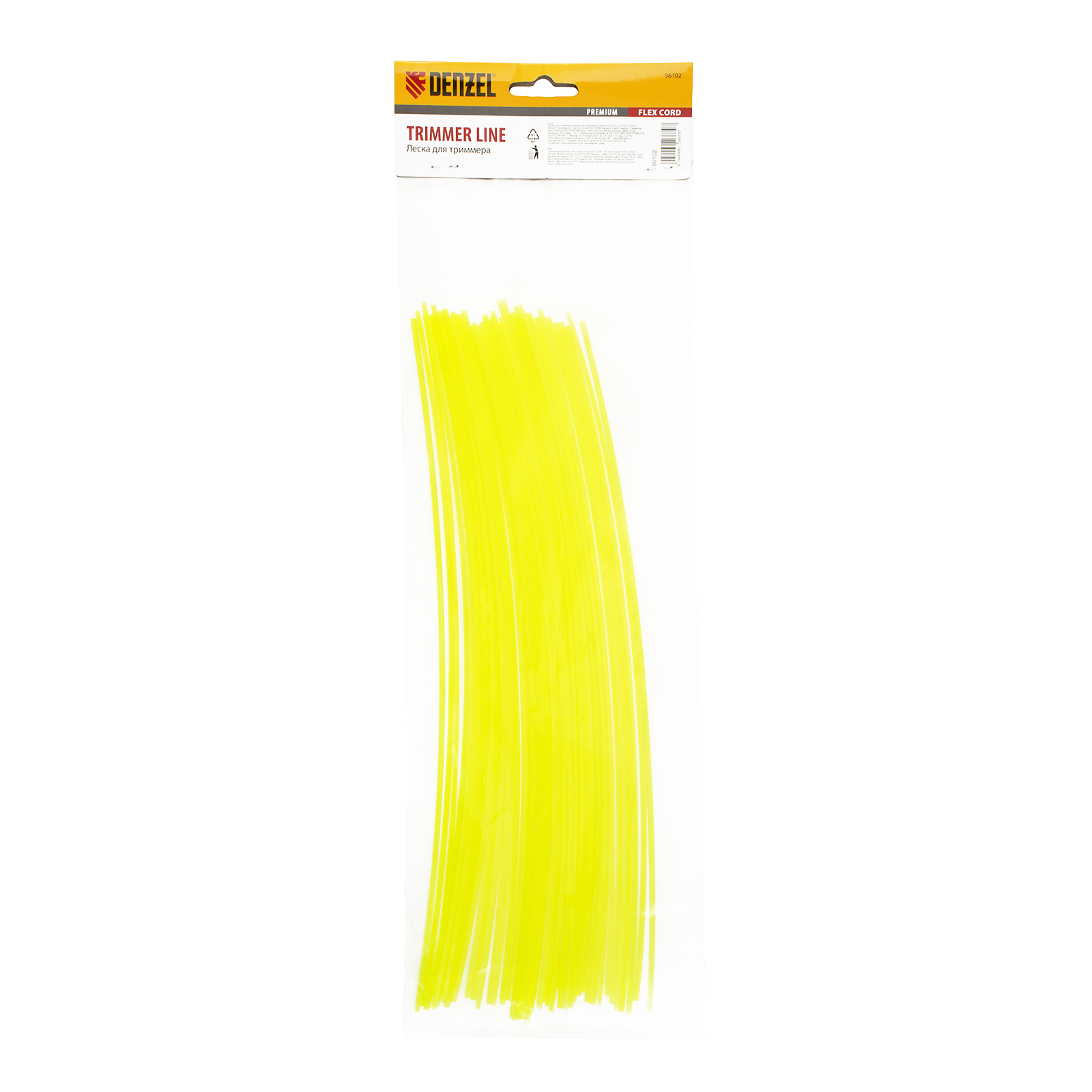 Квадратная нарезанная леска для триммера Denzel FLEX CORD 96102 диаметром 2 мм и длиной 30 см, 50 шт. в уп., предназначена для заправки в триммерную головку. Подходит для электротриммеров мощностью от 1000 Вт и бензотриммеров. С ее помощью можно скашивать газонную траву и небольшие сорняки.