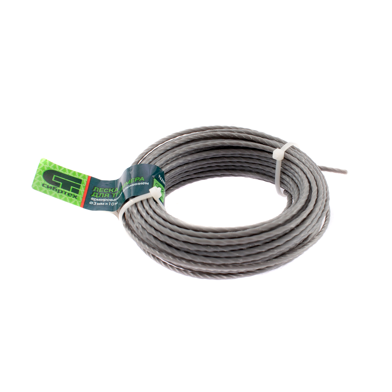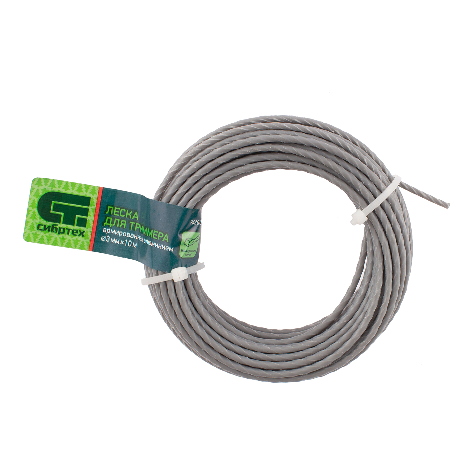 Квадратная витая леска для триммера Сибртех 961995, армированная алюминием, диаметром 3,0 мм и длиной 10 м, позволяет эффективно скашивать густые заросли травы, сорняки с толстыми и твердыми стеблями. Она устанавливается в катушку мощных профессиональных бензотриммеров.
