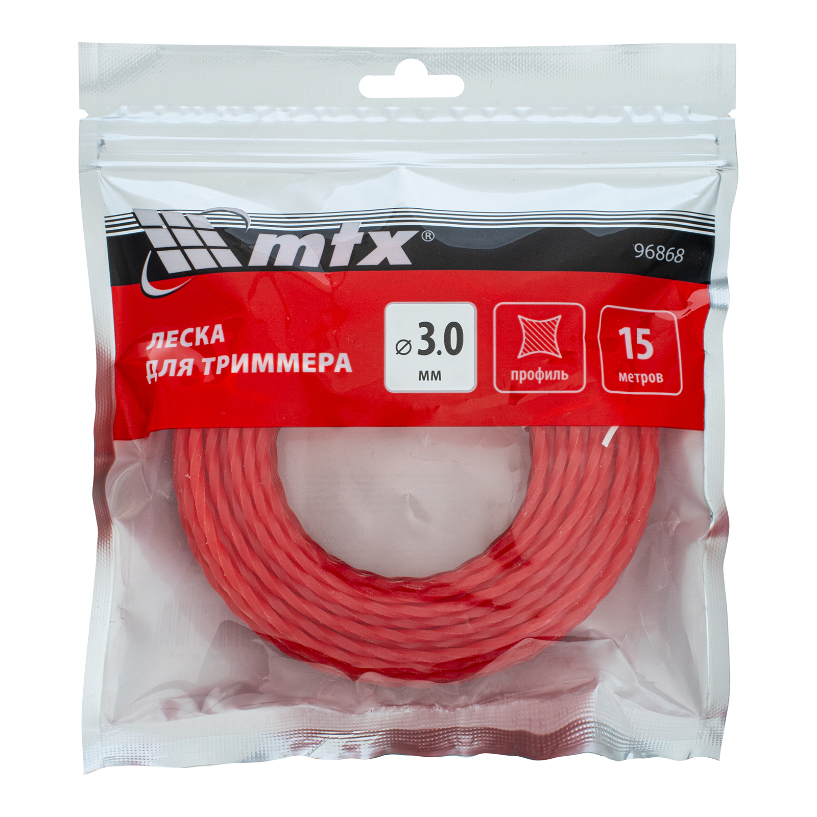 <p>Леска для триммера MTX 96868 с сечением «витой квадрат», толщиной 3,0 мм и длиной 15 м, позволяет быстро и эффективно скашивать газонную, а также высокую, жесткую и сухую траву. С ее помощью можно справиться с растительностью с толстыми стеблями, срезать побеги кустарников. Леска заправляется в катушку бензиновых триммеров. Пригодится для ухода за загородным участком, придомовой территорией и т.д.</p><h2>Преимущества</h2><ul><li>Длительный срок службы — леска изготовлена из прочного полиамида PA6, устойчива к обрыву и медленно изнашивается.</li><li>Высокая скорость скашивания — корд с острыми гранями производит агрессивный рез, позволяя быстро справиться с работой.</li><li>Экономичность — леска поставляется в намотке 15 м, которой хватит надолго.</li></ul>
