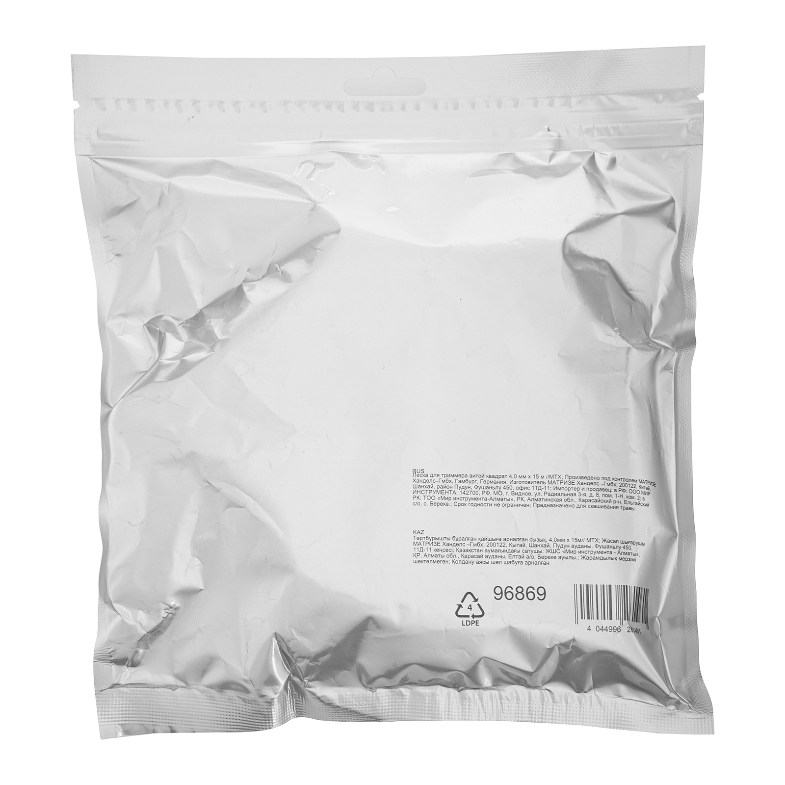 Леска для триммера витой квадрат 4,0 мм х 15 м MTX