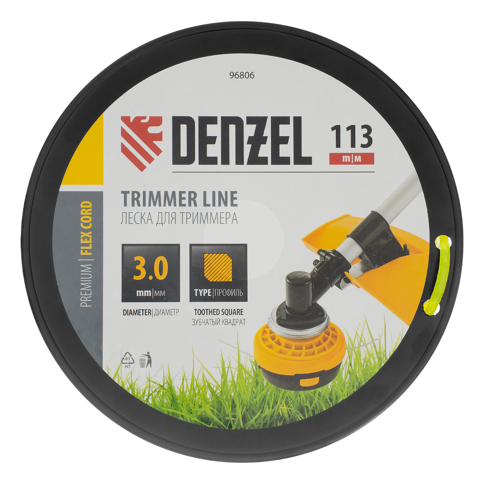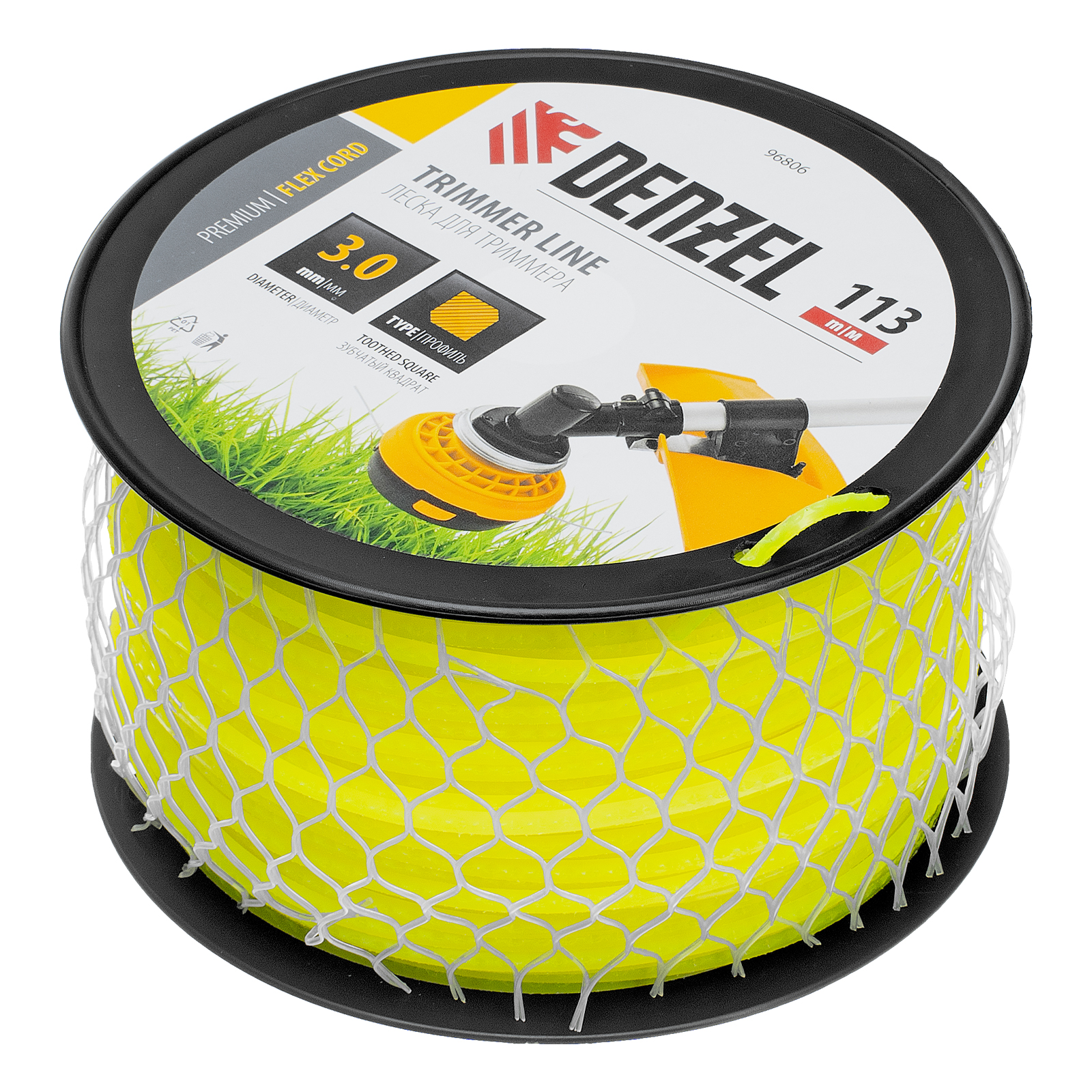 Леска для триммера Denzel FLEX CORD 96806 с сечением «зубчатый квадрат», 3,0 мм х 113 м, на DIN-катушке, предназначена для скашивания газонной травы и сорняков. Подходит к триммерам с объемом двигателя 25-52 см3. Корд пригодится владельцам загородных участков и сотрудникам коммунальных служб.