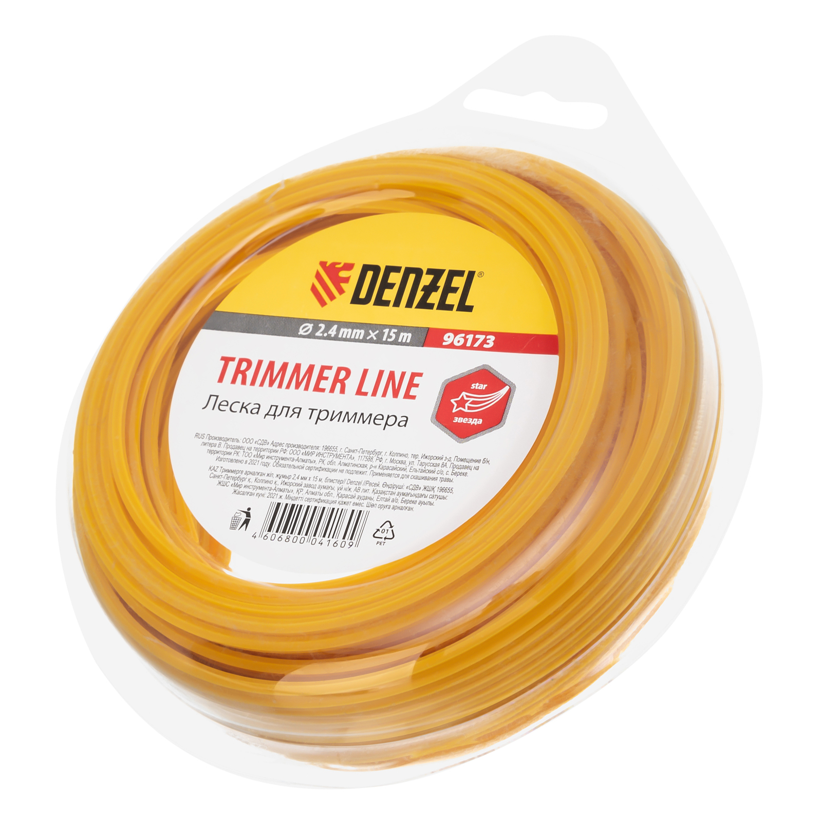 Леска Denzel 96173 размером 2,4 мм х 15 м может заправляться в катушку электрического или бензинового триммера. Форма сечения «звезда» обеспечивает высокое качество скашивания травы, бурьяна и высохшей растительности. Работать такой леской можно на ровных участках без камней.