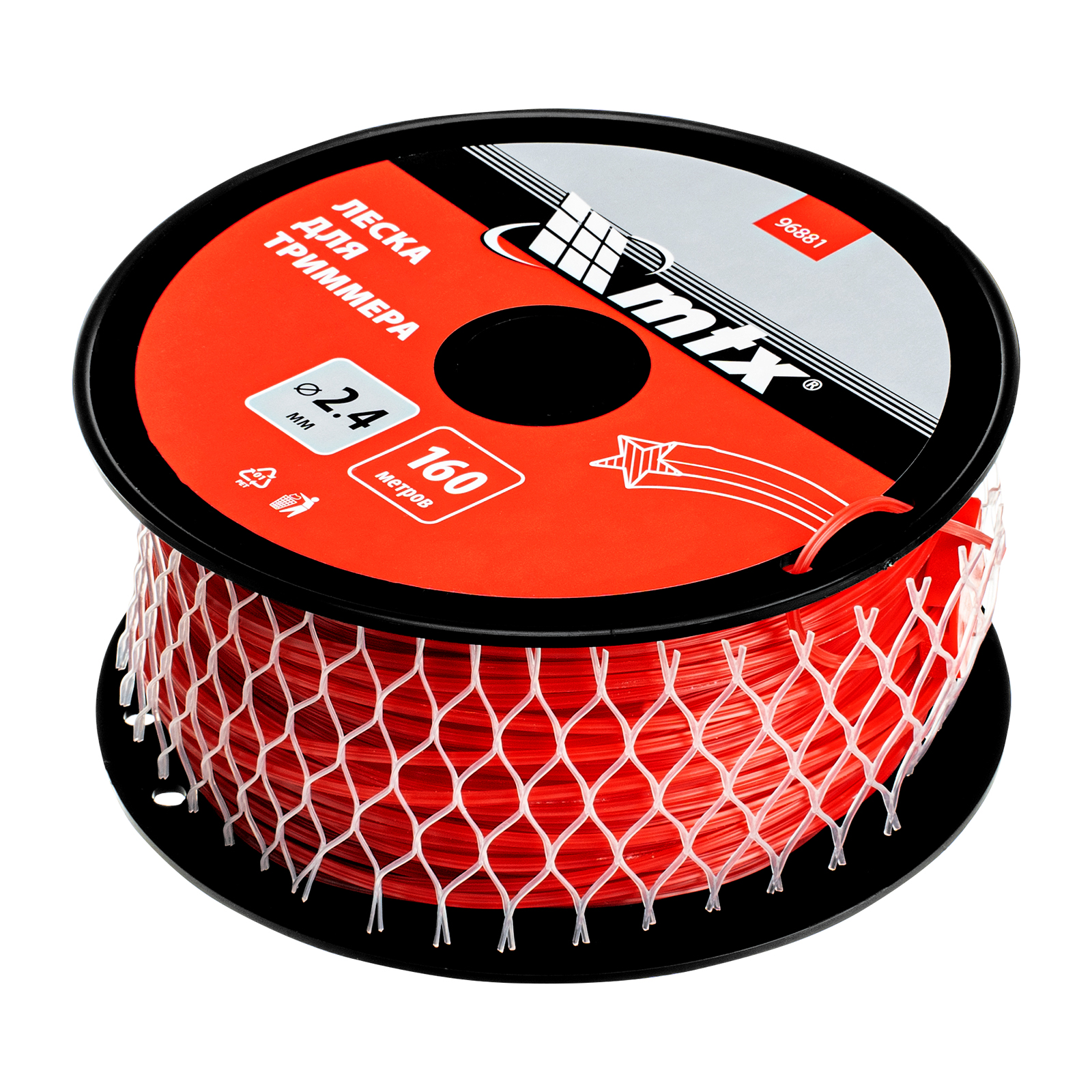 <p>Леска для триммера MTX 96881 с сечением «звезда», толщиной 2,4 мм и длиной 160 м, поставляется на катушке и позволяет скашивать мягкую, молодую траву, а также густую и жесткую растительность. Используется в качестве режущего элемента для бензиновых триммеров. Пригодится на дачном участке, а также для ухода за газонами на придомовой территории, в скверах и т.д.</p><h2>Преимущества</h2><ul><li>Долговечность — леска из прочного полиамида PA6 отличается износостойкостью.</li><li>Сечение «звезда» — корд с острыми гранями быстро срезает траву, обеспечивает ровный срез и позволяет выполнять больший объем работ, не увеличивая нагрузку на двигатель триммера.</li><li>Удобное хранение и транспортировка — леска намотана на катушку со специальными отверстиями, в которых можно закрепить кончики корда.</li><li>Длина 160 м — одной намотки хватит для выполнения большого объема работ.</li></ul>