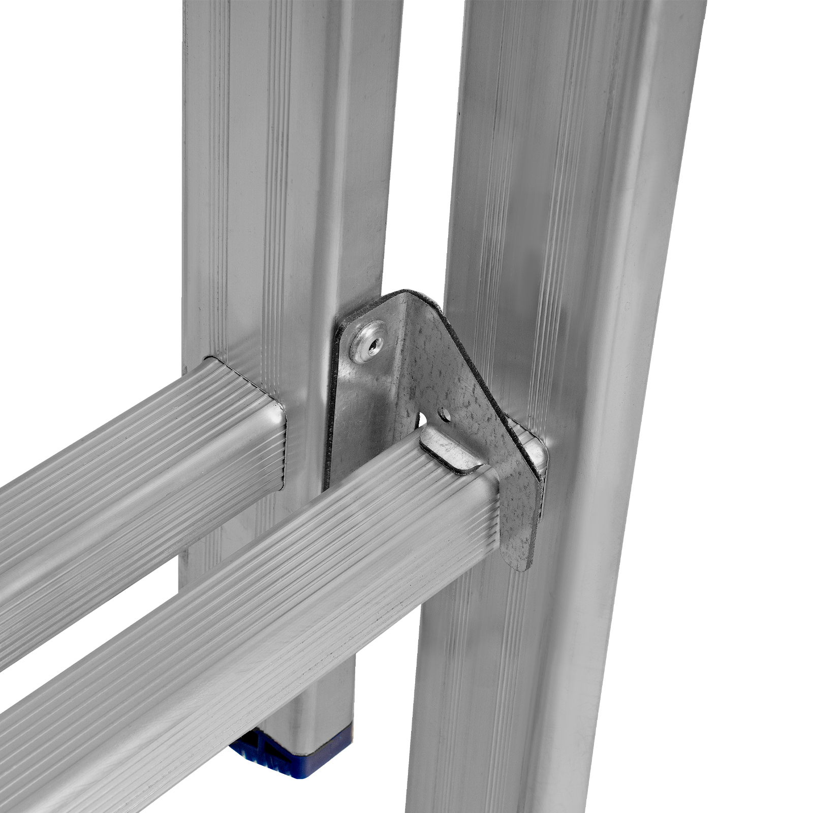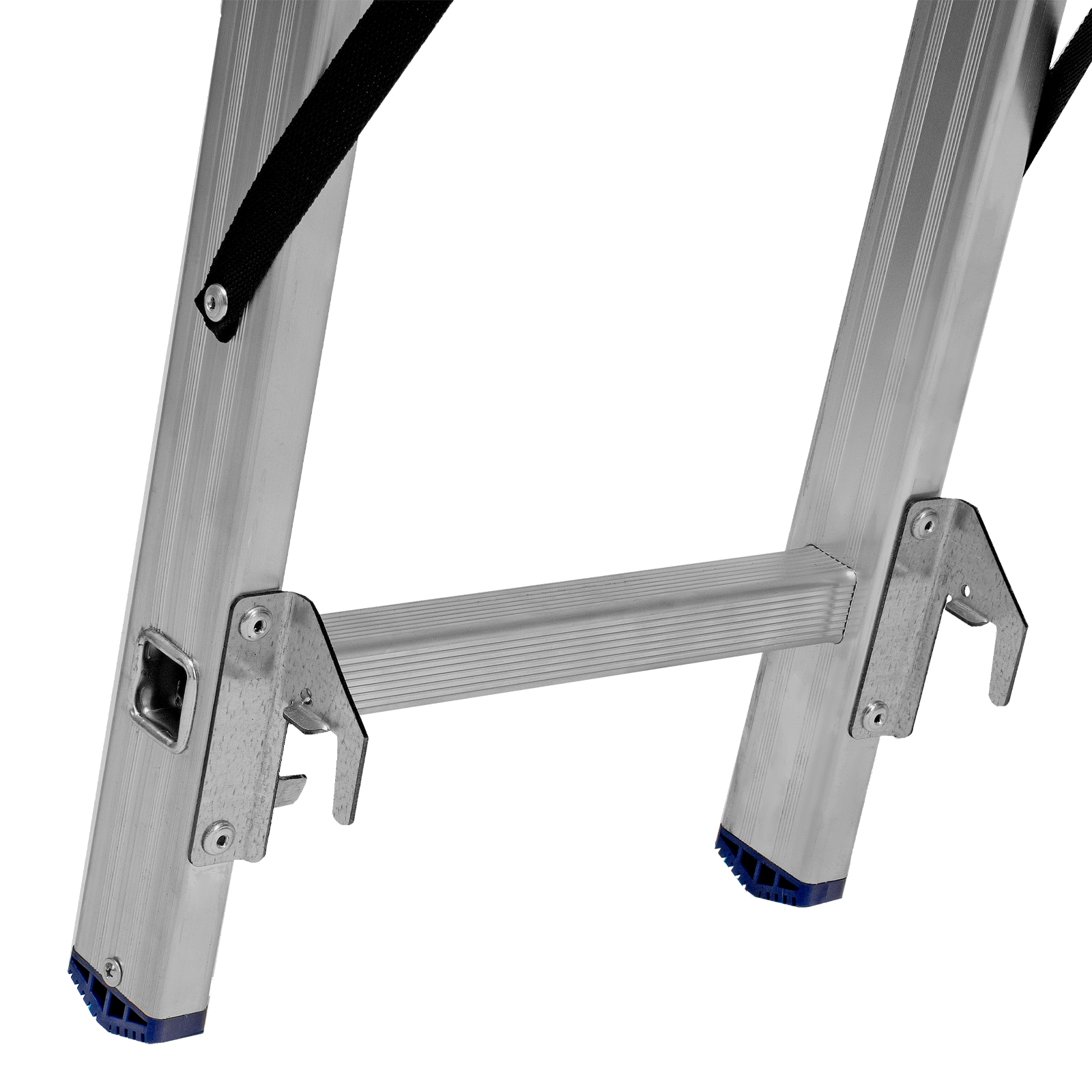 - Устойчивость — благодаря съемному стабилизатору лестница ровно стоит на горизонтальной поверхности.
