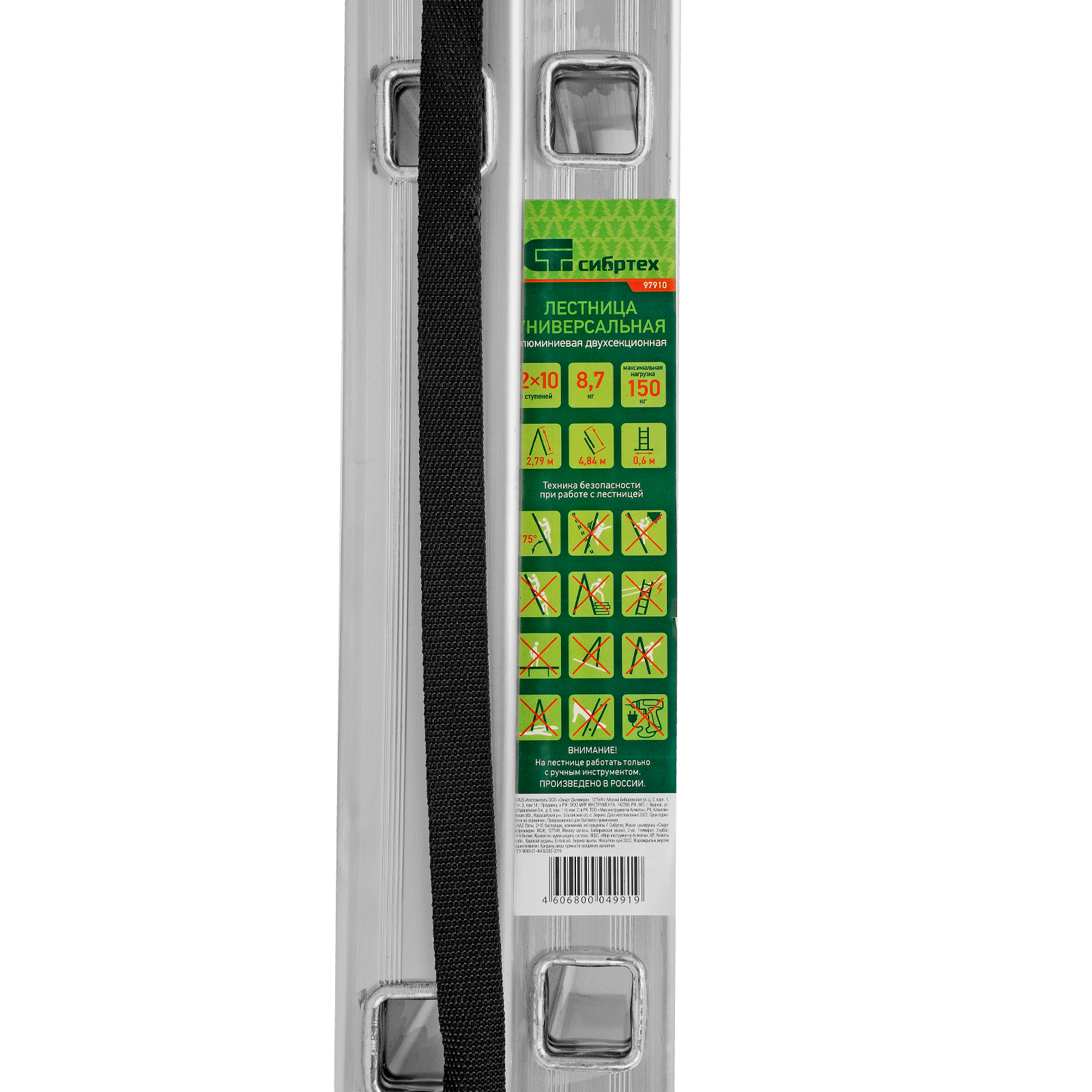 Алюминиевая двухсекционная лестница Сибртех 97910 состоит из 2 секций по 10 ступеней каждая. Легкая и прочная, она используется в качестве двухсторонней стремянки, предназначена для бытового и полупрофессионального применения.