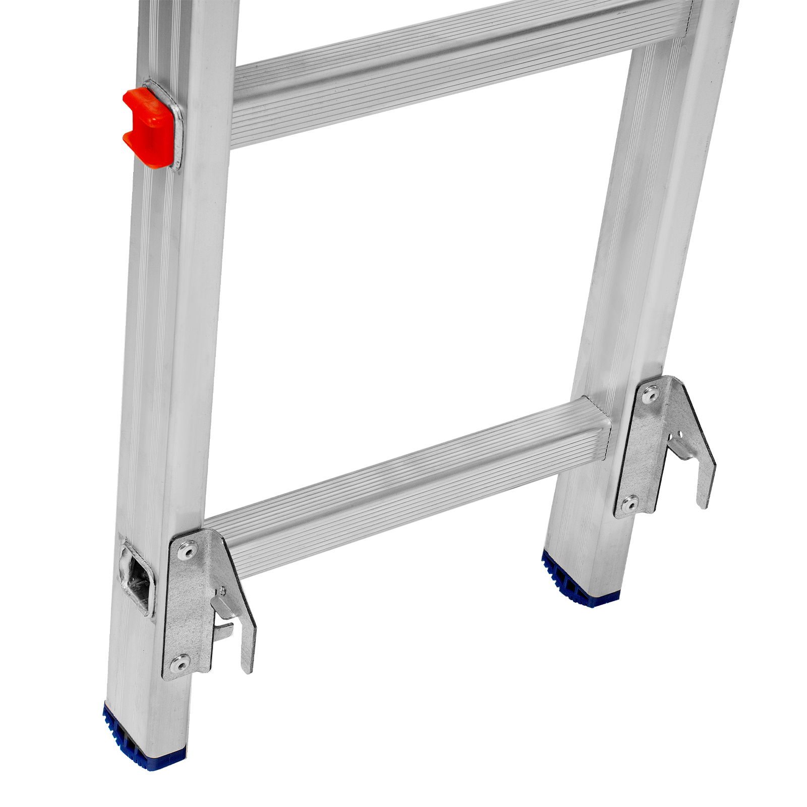 - 3 рабочих положения — стремянка, двухсторонняя стремянка, приставная лестница с одной или двумя секциями.