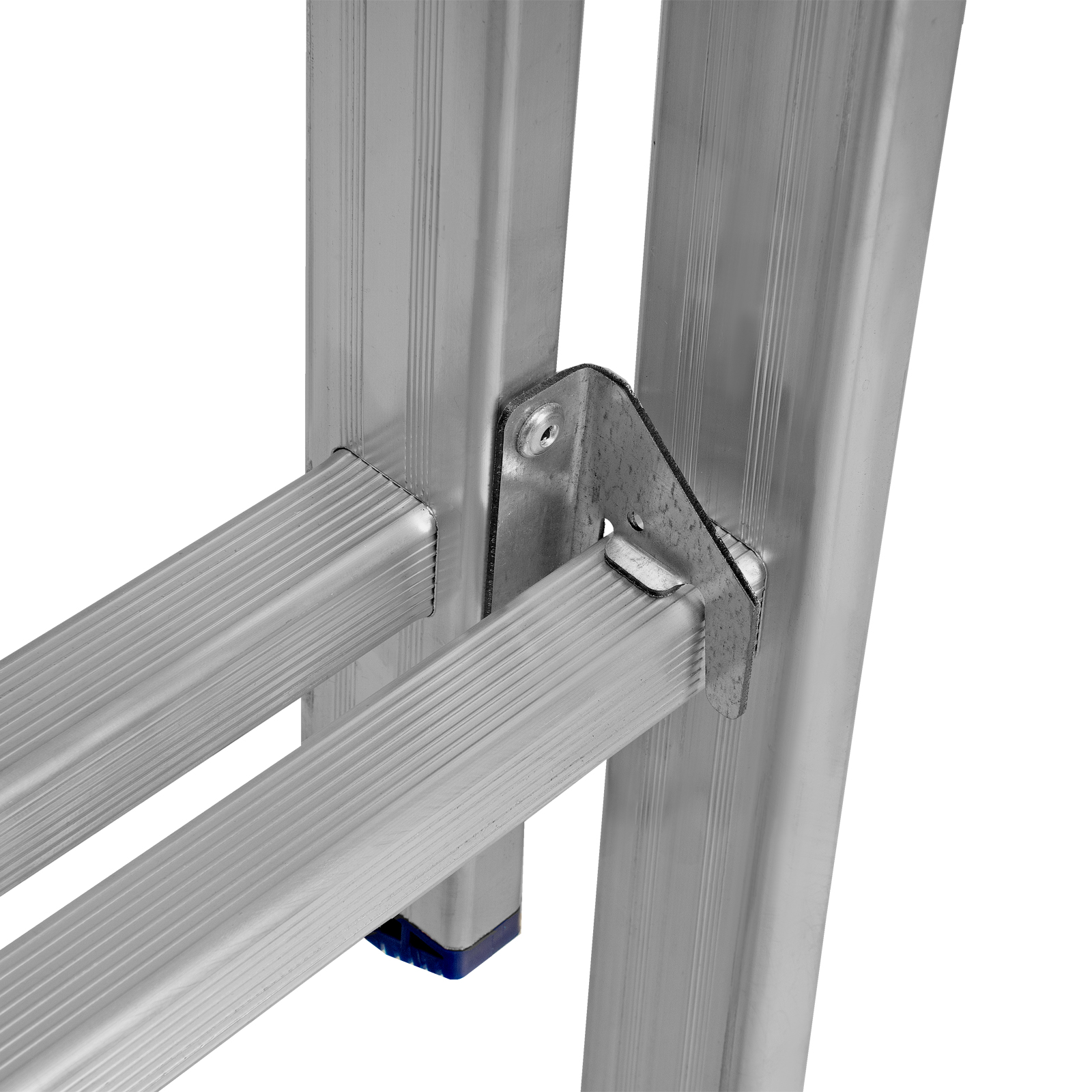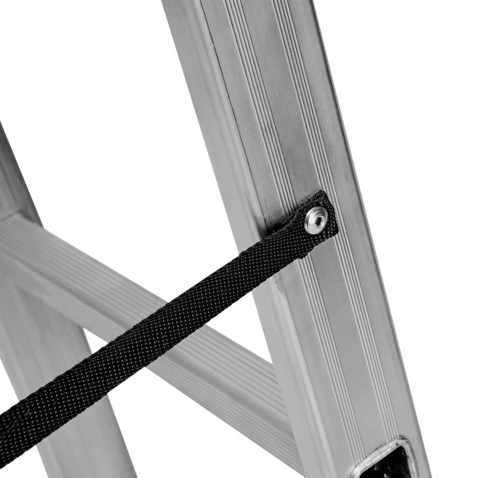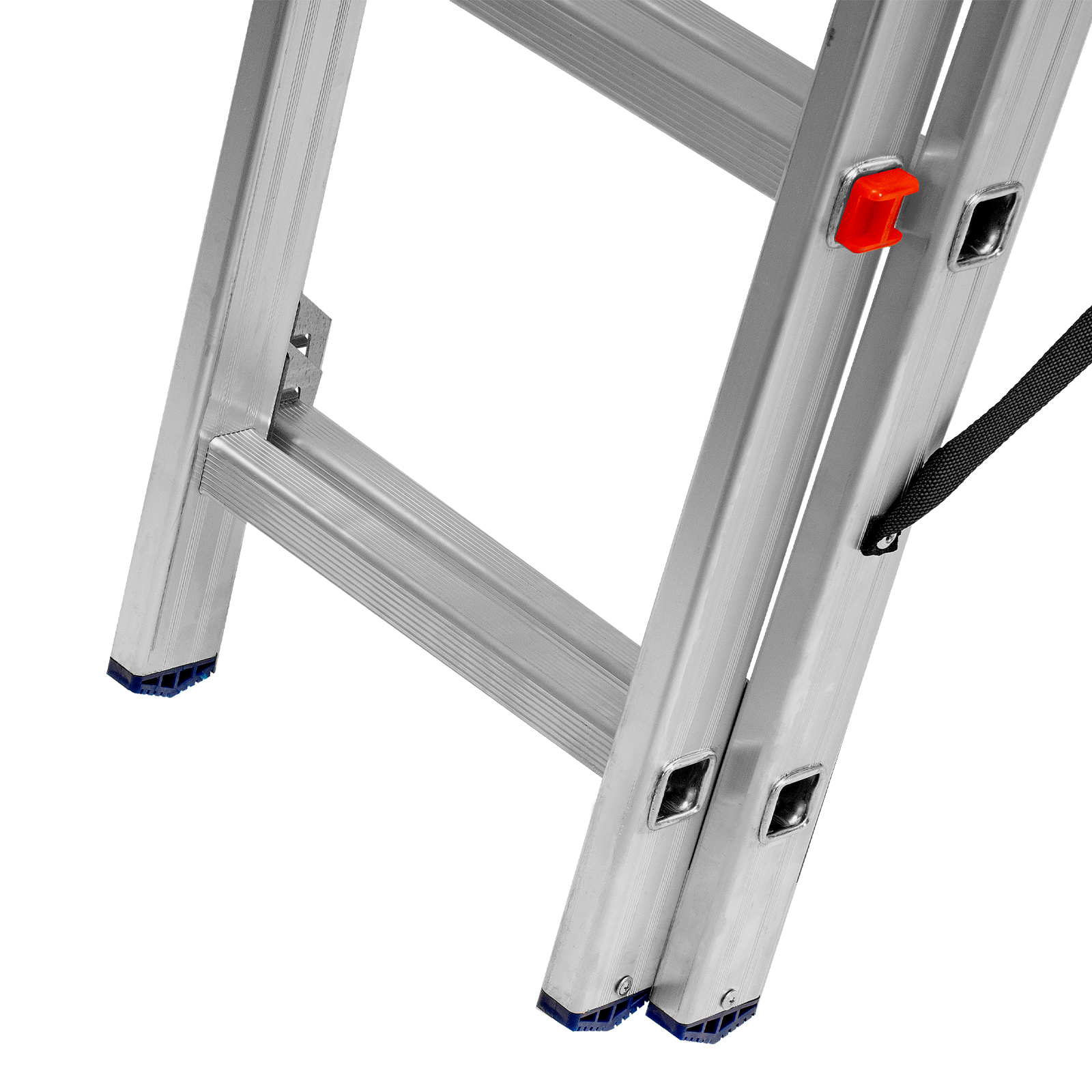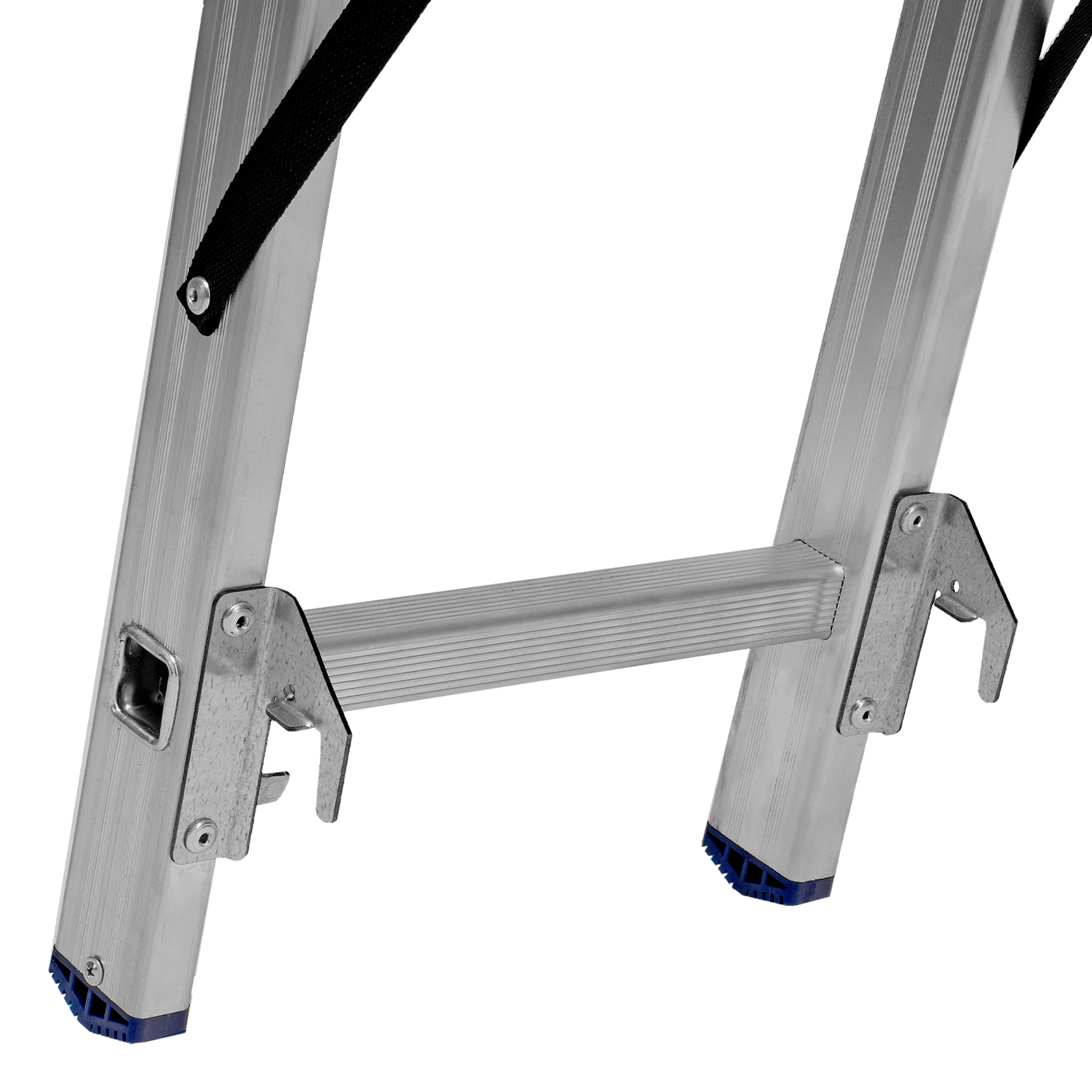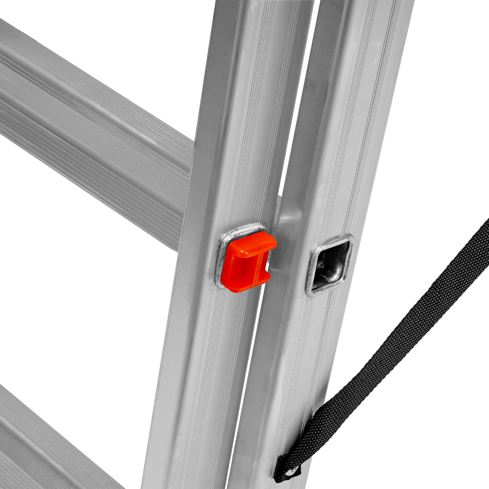 - Устойчивость — лестница оснащена съемным стабилизатором, выравнивающим ее положение на горизонтальных поверхностях.