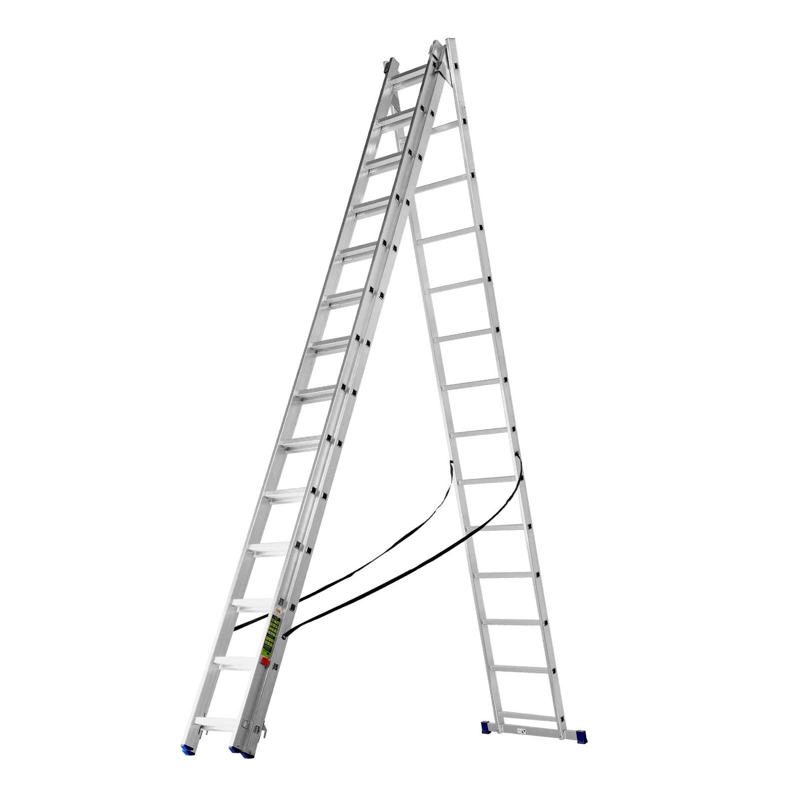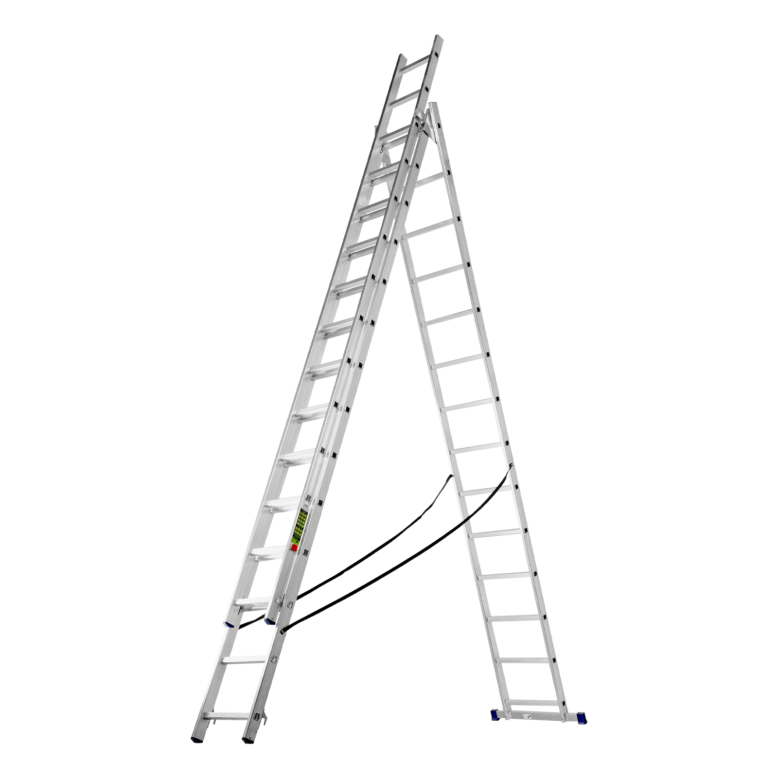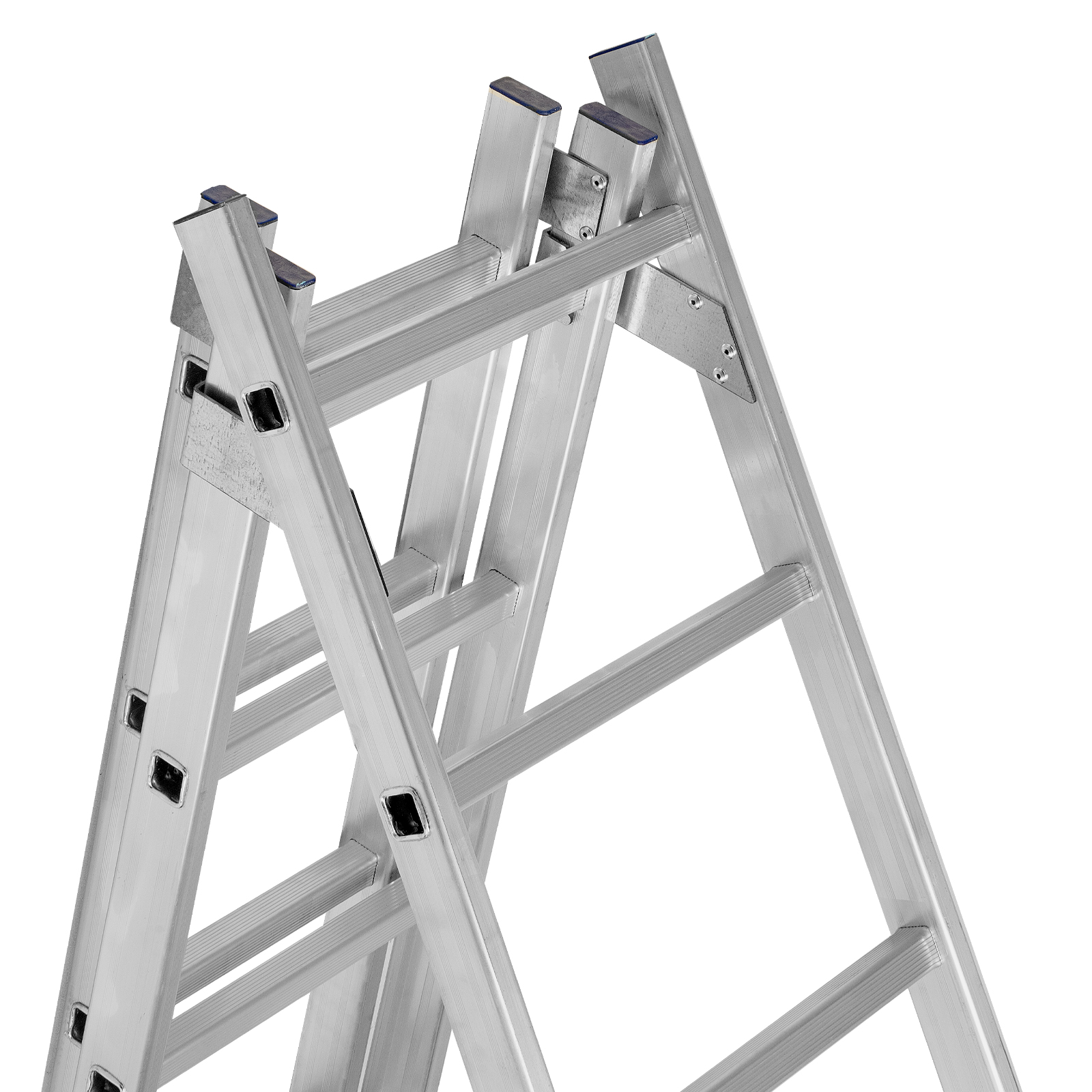 - Многофункциональность — лестница может использоваться в 3 различных вариациях — в качестве стремянки (с двумя расставленными и одной выдвинутой вверх секцией), двухсторонней стремянки (две секции расставлены, третья демонтирована) и приставной лестницы.