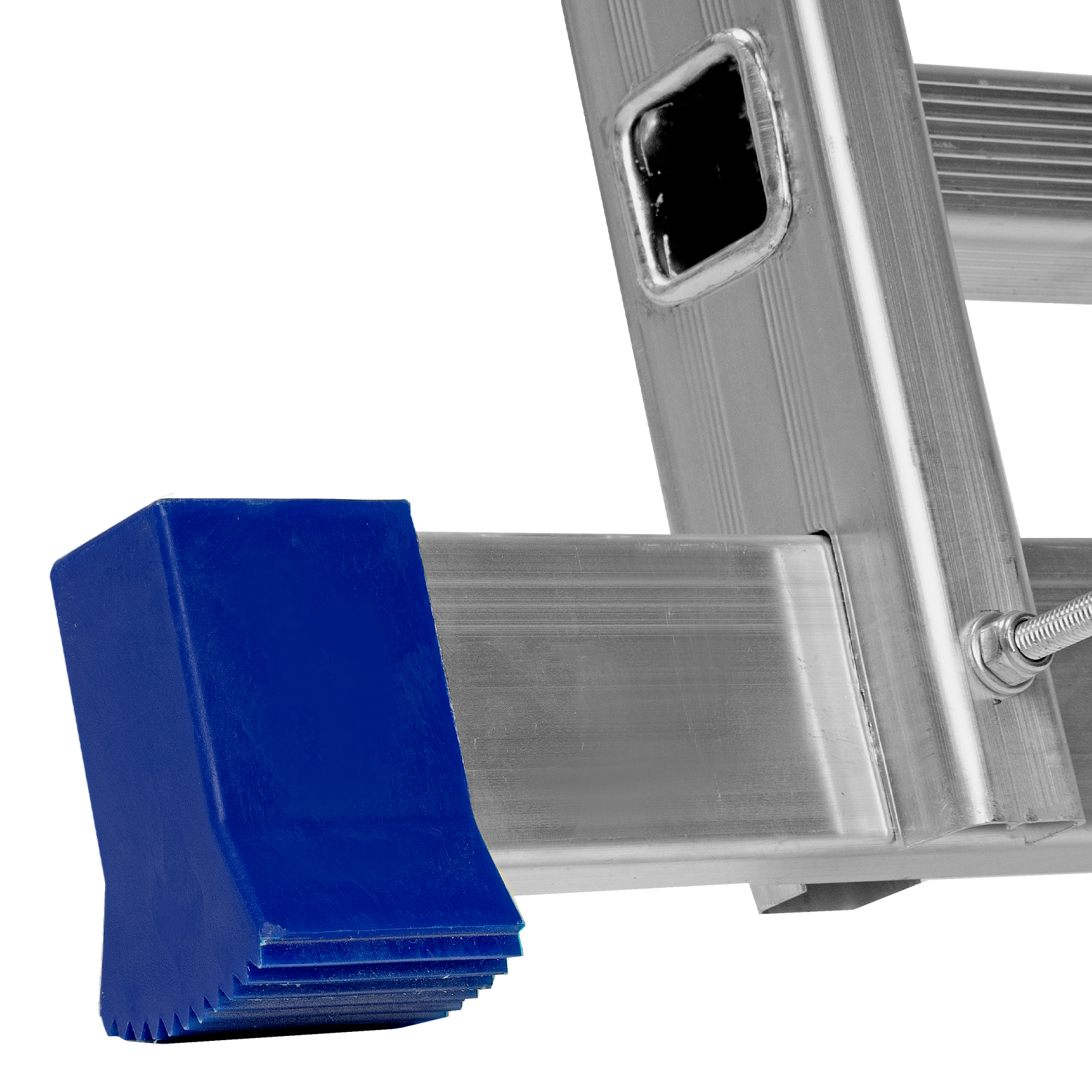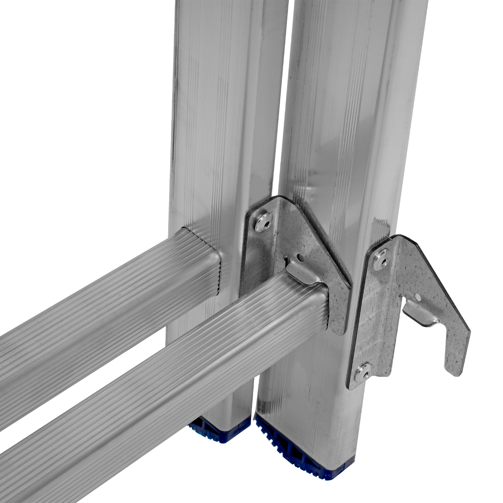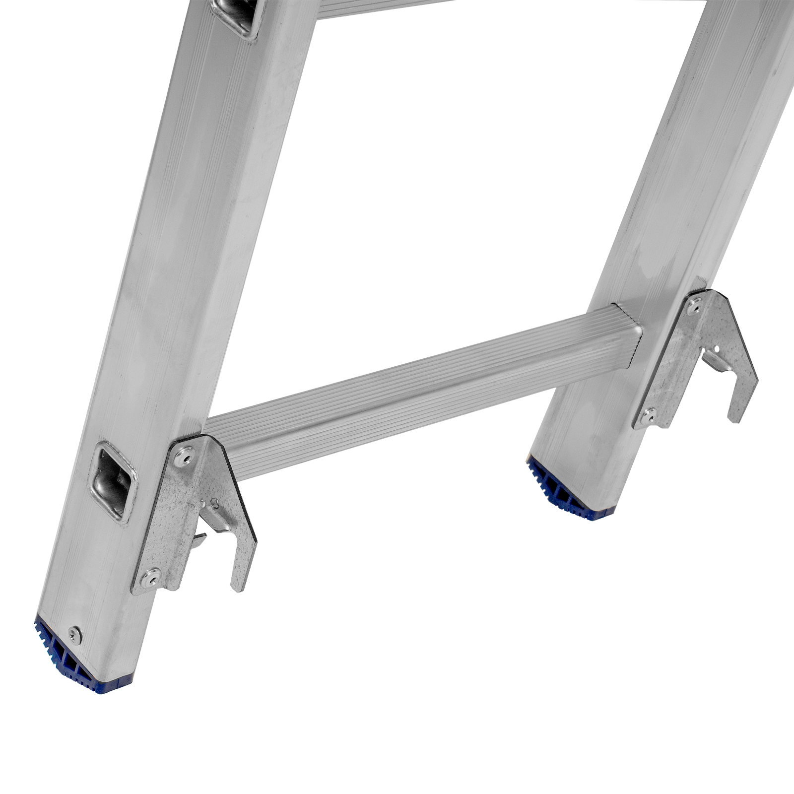 - Устойчивость — лестница оснащена съемным стабилизатором, выравнивающим ее положение на горизонтальных поверхностях.