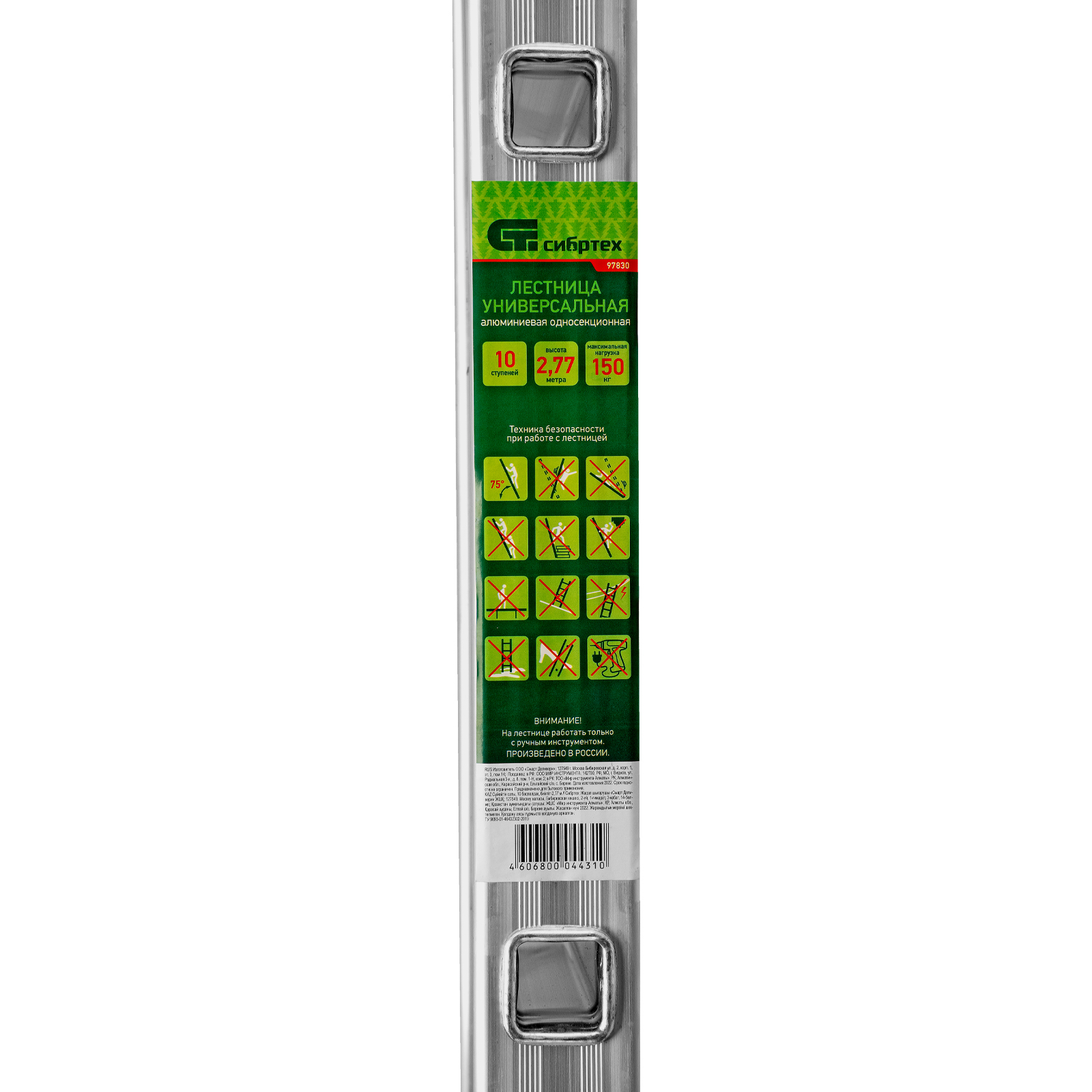 Приставная лестница Сибртех 97830 с 10 ступенями не требует сборки — она готова к использованию сразу после приобретения. Будет полезна в различных сферах, начиная от бытового применения, заканчивая эксплуатацией коммунальными службами и работниками магазинов.
