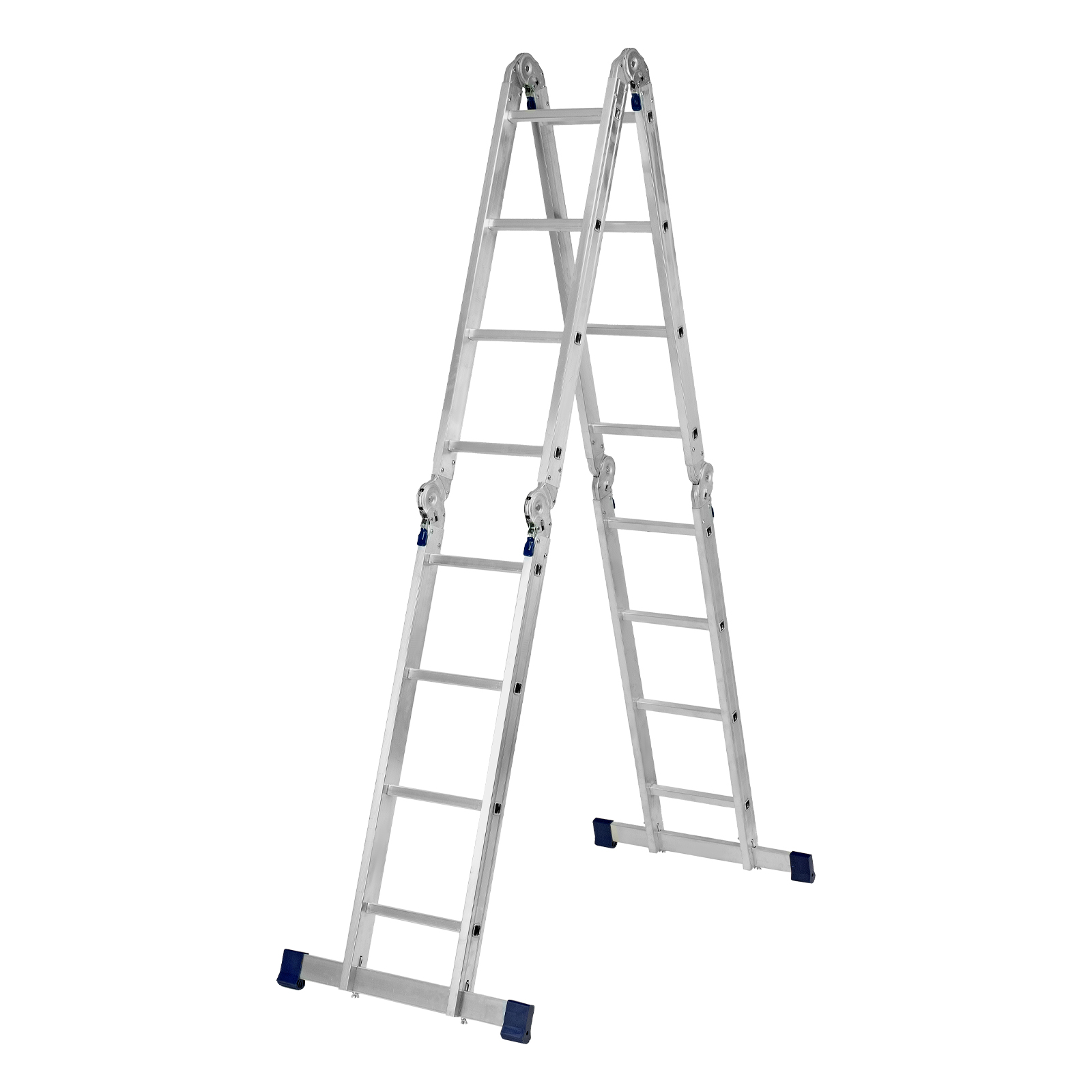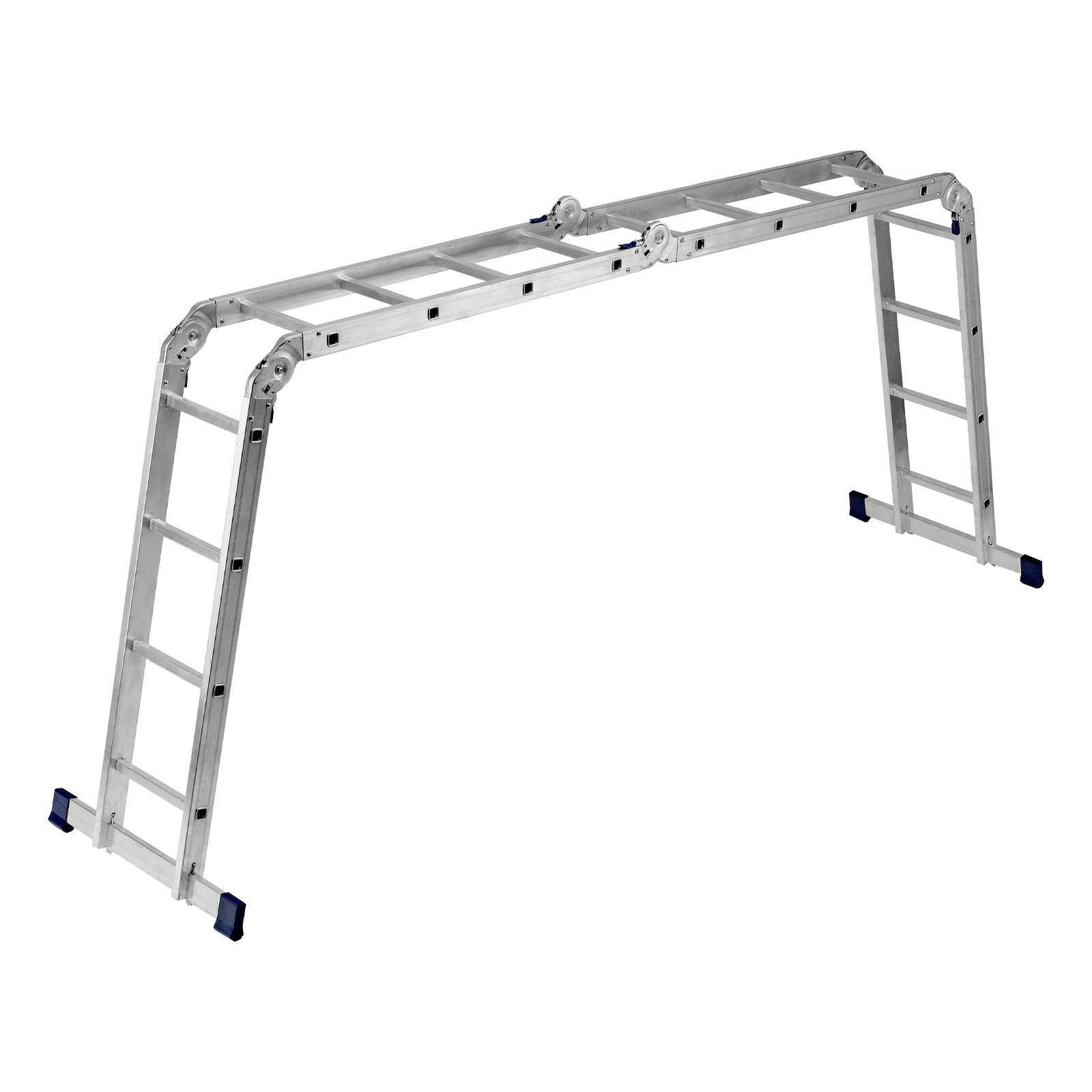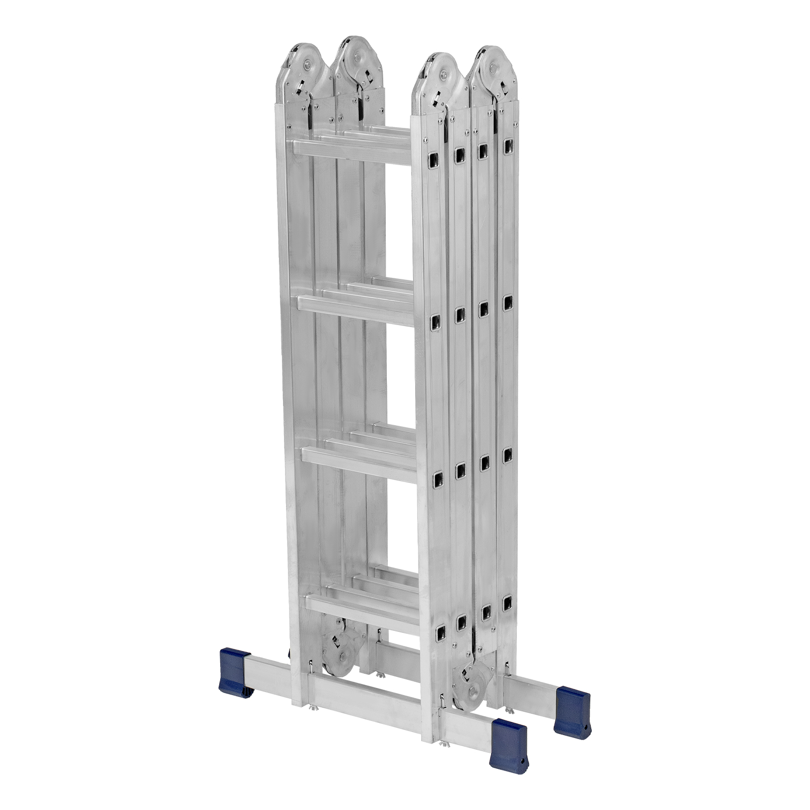 Шарнирная алюминиевая лестница Сибртех 97882 представляет собой 4 секции по 4 ступени, которые можно настроить в нескольких рабочих положениях. Она может использоваться в качестве приставной лестницы, двухсторонней стремянки и помоста. Будет полезна как в быту, так и на небольших стройках, в гараже и магазинах.