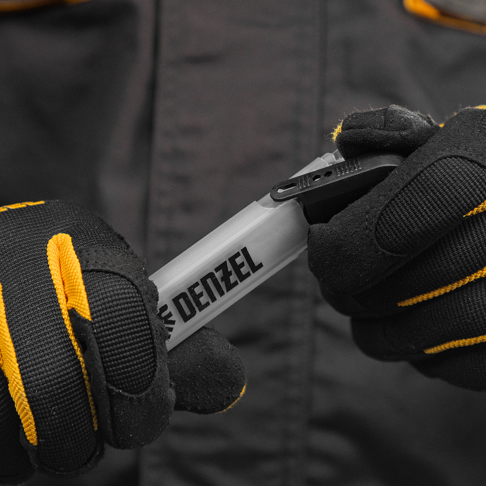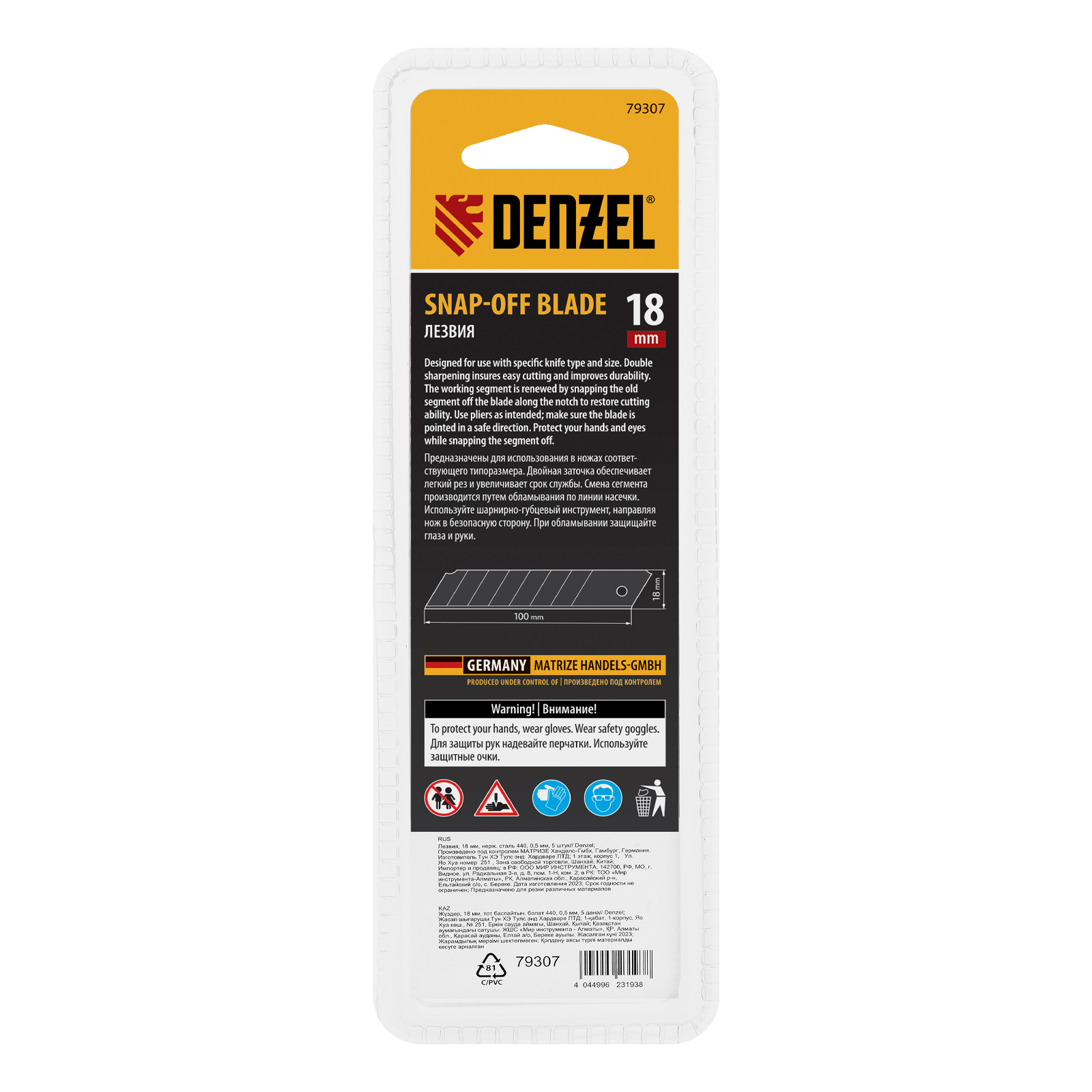 Лезвия Denzel 79307 шириной 18 мм, изготовленные из нержавеющей стали 440C толщиной 0,5 мм, 5 шт. в упаковке, — сменные рабочие элементы для монтажных ножей соответствующего типоразмера. Подходят для разрезания твердых материалов, линолеума, пластика, гипсокартона, а также картона, пленки, обоев. Обеспечивают легкий рез. Отличаются повышенной прочностью и долговечностью по сравнению с аналогами других торговых марок. Лезвия остро заточены и хорошо гнутся, могут применяться для проведения строительных и отделочных работ, а также в бытовых целях.