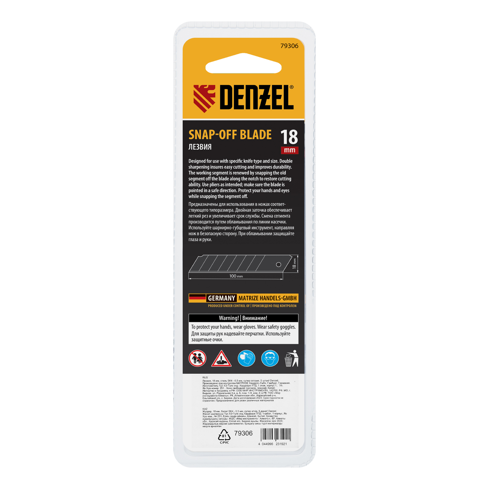 Суперострые лезвия Denzel 79306 шириной 18 мм, изготовленные из стали SK4 толщиной 0,5 мм, 5 шт. в упаковке, — сменные рабочие элементы для монтажных ножей соответствующего типоразмера. Подходят для разрезания твердых материалов, линолеума, пластика, гипсокартона, а также картона, пленки, обоев. Обеспечивают легкий рез. Отличаются повышенной прочностью и долговечностью по сравнению с аналогами других торговых марок. Лезвия могут применяться для проведения строительных и отделочных работ, а также в бытовых целях.